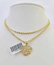 10k Solid Rope Chain 2mm Mom Pendant Charm Necklace SET 18-22" Ladies
