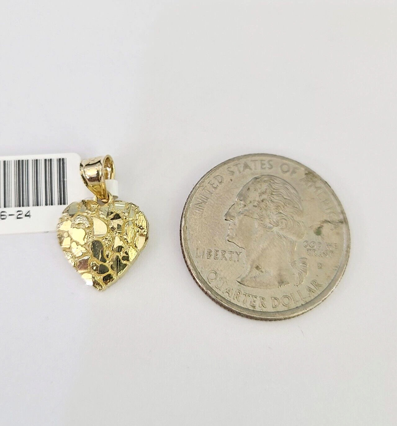 Is Presenting You with This Beautifully Designed Real 10k Yellow Gold Nugget Heart Charm with 10k 2mm Solid Rope Chain in various lengths. Please feel free to contact us if you have any queries regarding the item. These Beautiful chains and pendants will not tarnish, discolor, or fade because they are Pure 10K Gold. 22"-A7B4 , A1B0 P12056