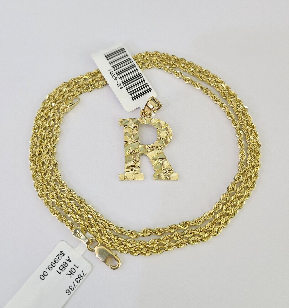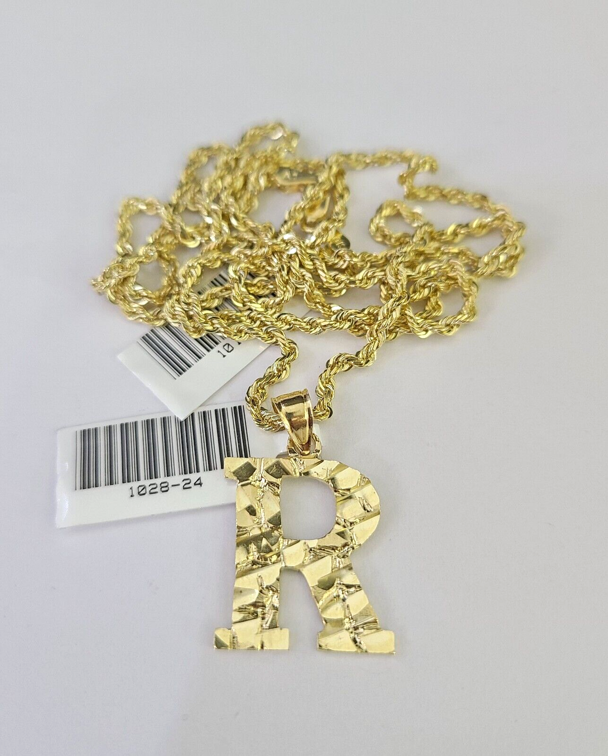 Is Presenting You with This Beautifully Designed Real 10k Yellow Gold R initial/Alphabet Charm with 10k 2mm Solid Rope Chain in various lengths. Please feel free to contact us if you have any queries regarding the item. These Beautiful chains and pendants will not tarnish, discolor, or fade because they are Pure 10K Gold. 22"-A7B4 , A1B6 P4604