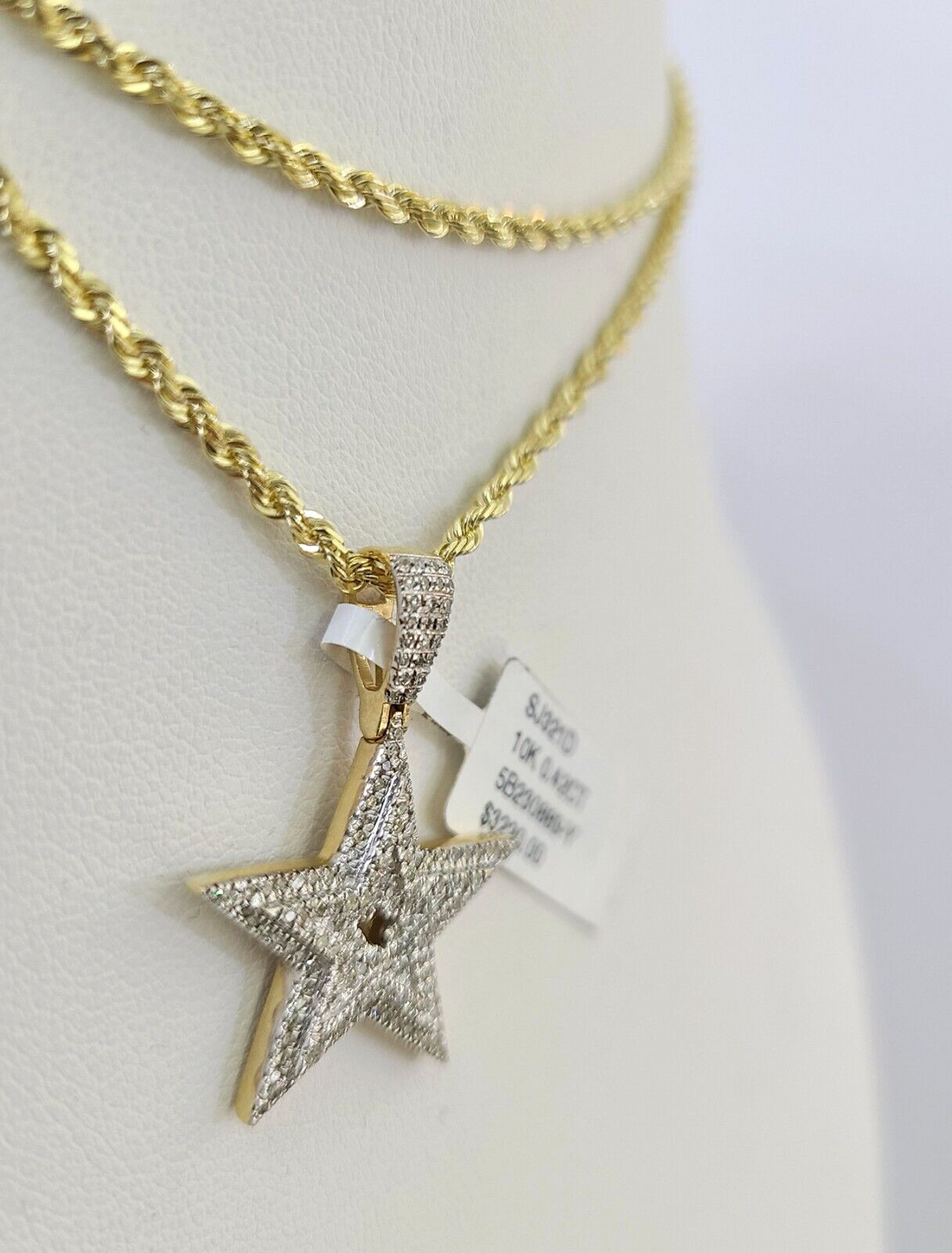 10k Solid Rope Chain 2mm Star Diamond Pendant Charm Necklace SET 18-22 in