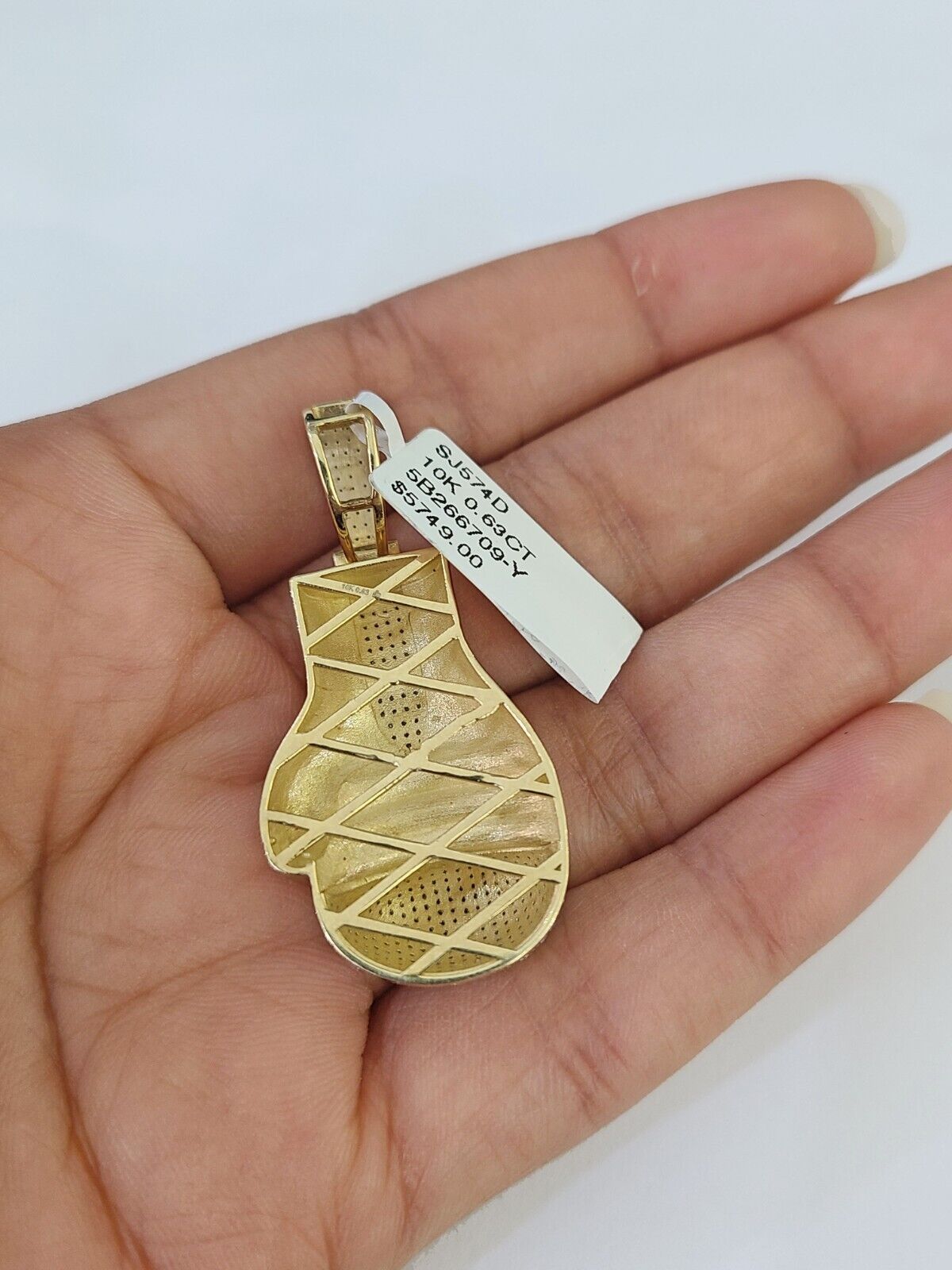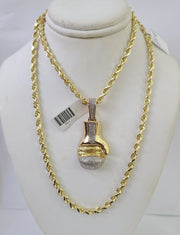 10k Solid Rope Chain Boxing Gloves Charm Diamond Set 4mm 20"-28" Necklace Gold