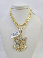 10k Solid Rope Chain Eagle Anchor Charm Set 4mm 18"-30" Necklace Gold Pendant