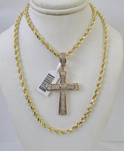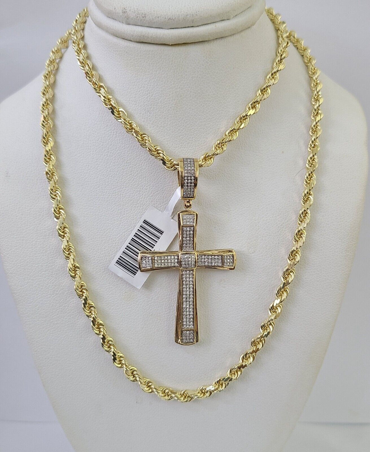 Is Presenting You with This Absolutely Stunning Real 10k Yellow Gold Solid Rope Chain 4mm, 20inch- 28 inches, Lobster Lock with a 10k Diamond Jesus Cross Pendant.��These Beautiful chains and Pendant will not tarnish, discolor, or fade because they are Pure 10K Gold.��