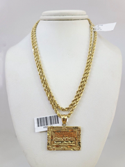 REAL 10k Rope Chain Last Supper Charm Pendant 3mm Necklace Set 18"-26"