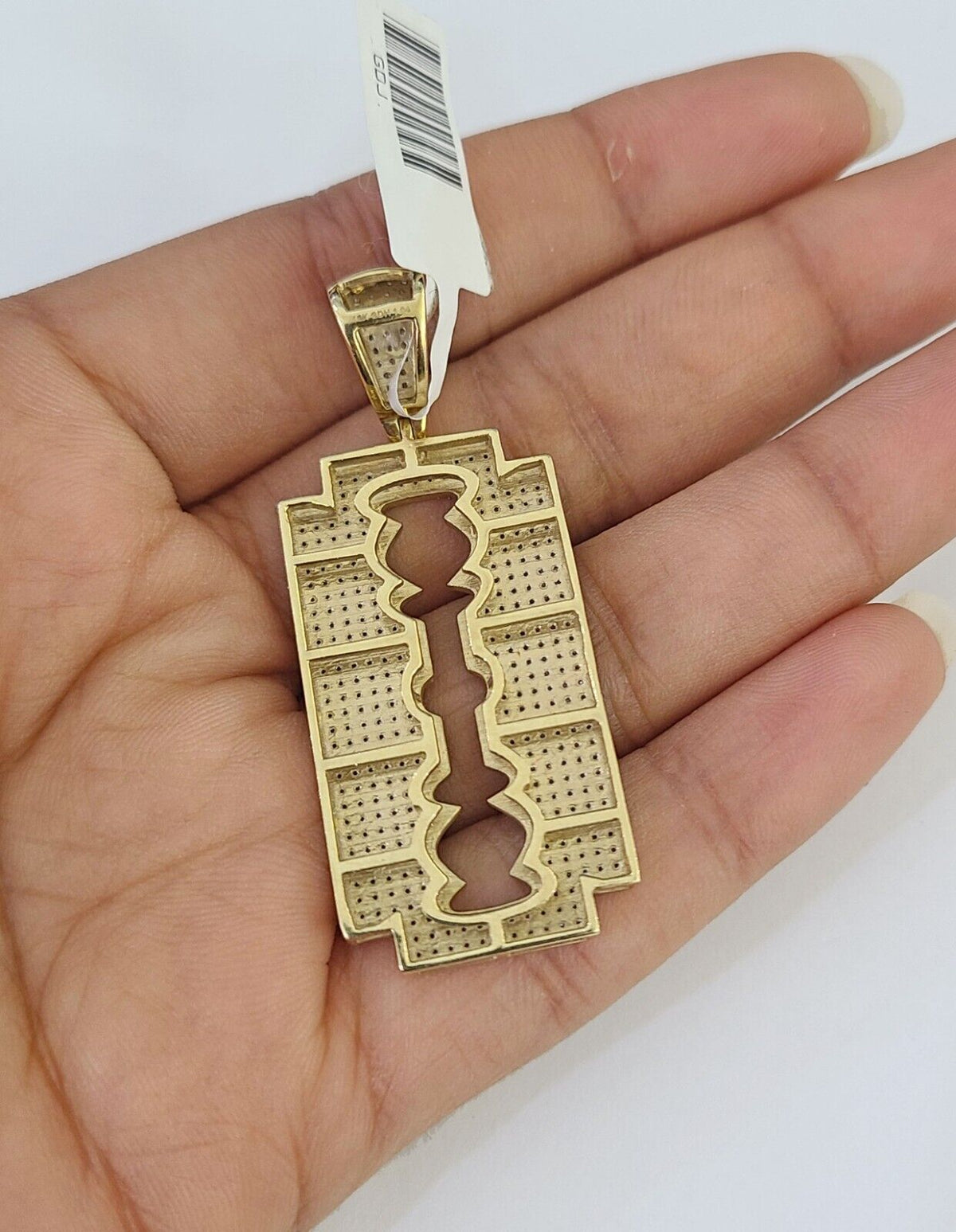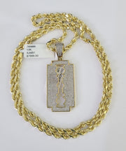 Is Presenting You with This Absolutely Stunning Real 10k Yellow Gold Solid Rope Chain 4mm, 20inch- 28 inches, Lobster Lock with a 10k Diamond Razor Blade Pendant.��These Beautiful chains and Pendant will not tarnish, discolor, or fade because they are Pure 10K Gold.��
