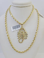 10k Solid Rope Chain Scorpion Charm Set 4mm 20"-28" Necklace Gold Yellow
