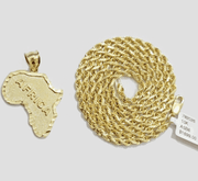 10k Yellow Gold Africa Map Charm Rope Chain 24 Inch Necklace Pendant SET SALE