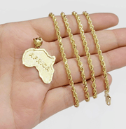 10k Yellow Gold Africa Map Charm Rope Chain 26 Inch Necklace Pendant SET SALE