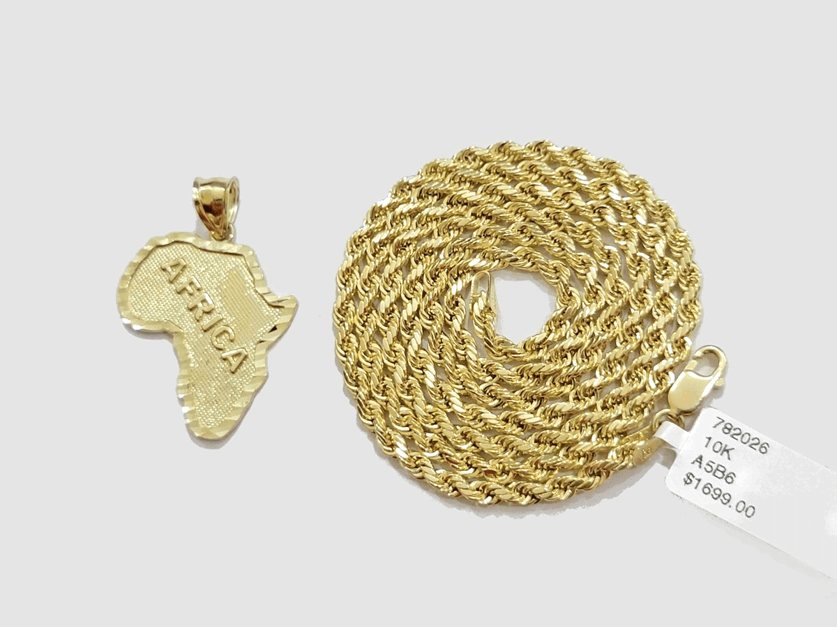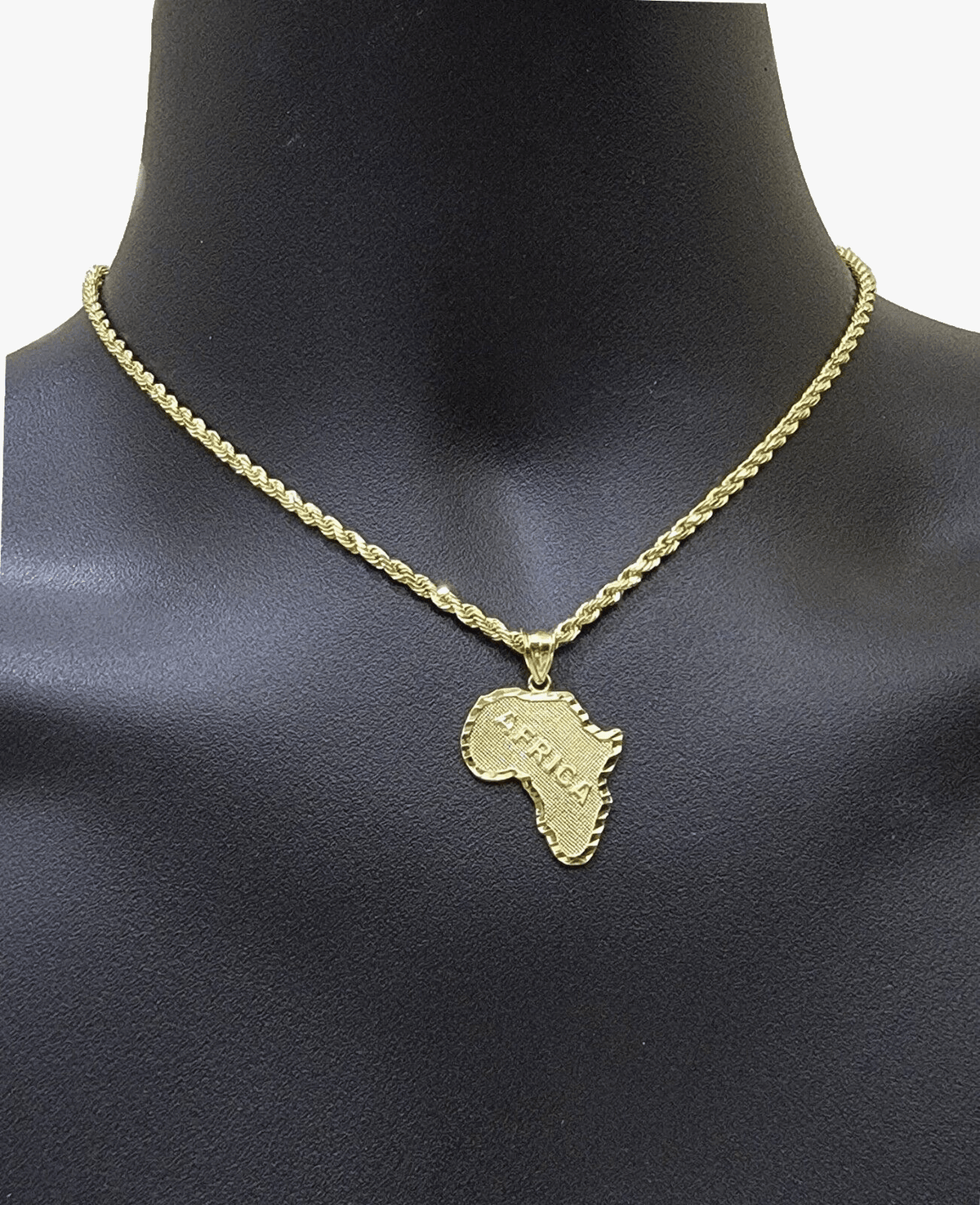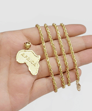 10k Yellow Gold Africa Map Charm Rope Chain Pendant 22 Inch Necklace SALE 10kt