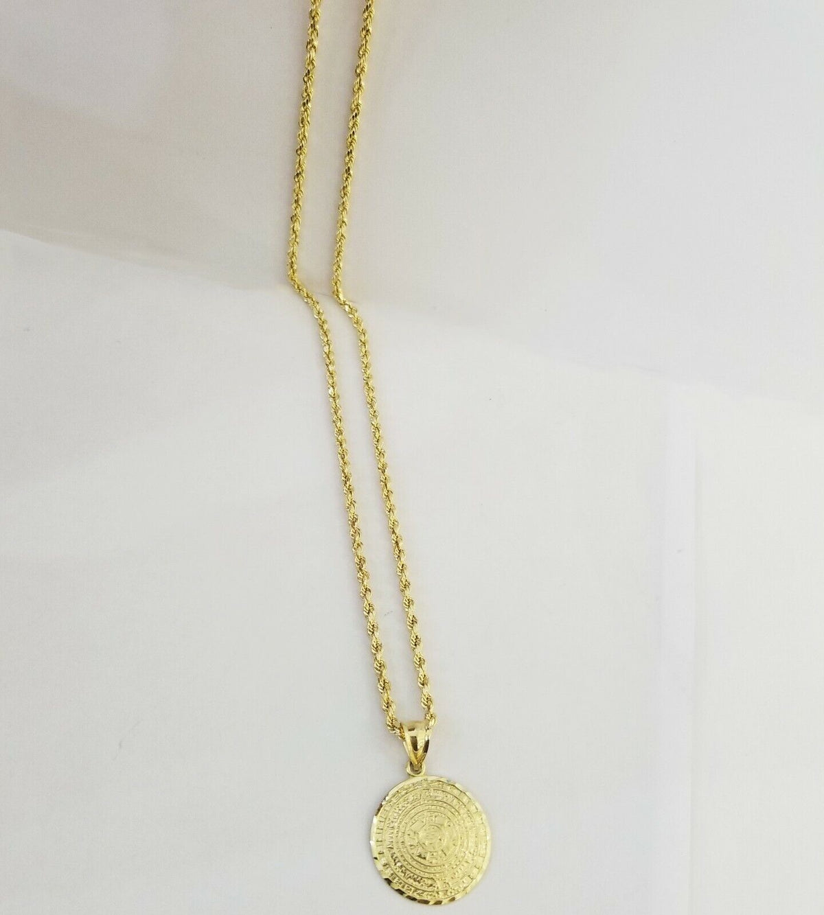 Is Presenting You with This Absolutely Stunning Real 10k Gold Aztec Calendar charm and rope chain. These Beautiful chain and pendent will not tarnish, discolor, or fade because they are Pure 10k gold. We also have them in various another length. Please feel free to contact us if you have any queries regarding the item.