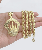 10k Yellow Gold Crown Charm Rope Chain 7mm 30'' Necklace Pendant 10kt Real SALE