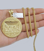 10k Yellow Gold Franco Chain Necklace Last Supper Charm Pendant 3mm 18"-26" Inch