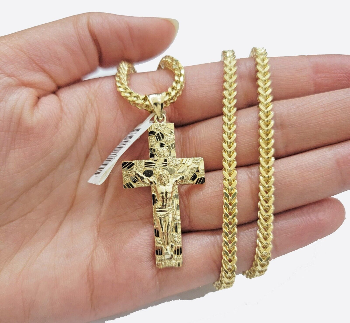 10k Yellow Gold Franco Chain & Nugget Charm 3mm 22" Inch Necklace Real 10KT SET