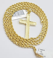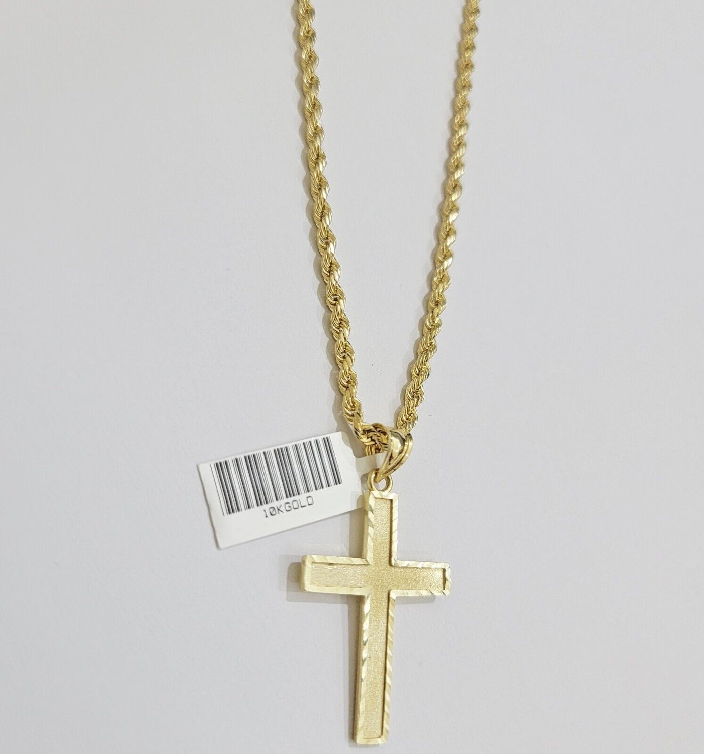 10k Gold Rope Chain and Cross Charm Set REAL 10KT Yellow Gold necklace & pendant
