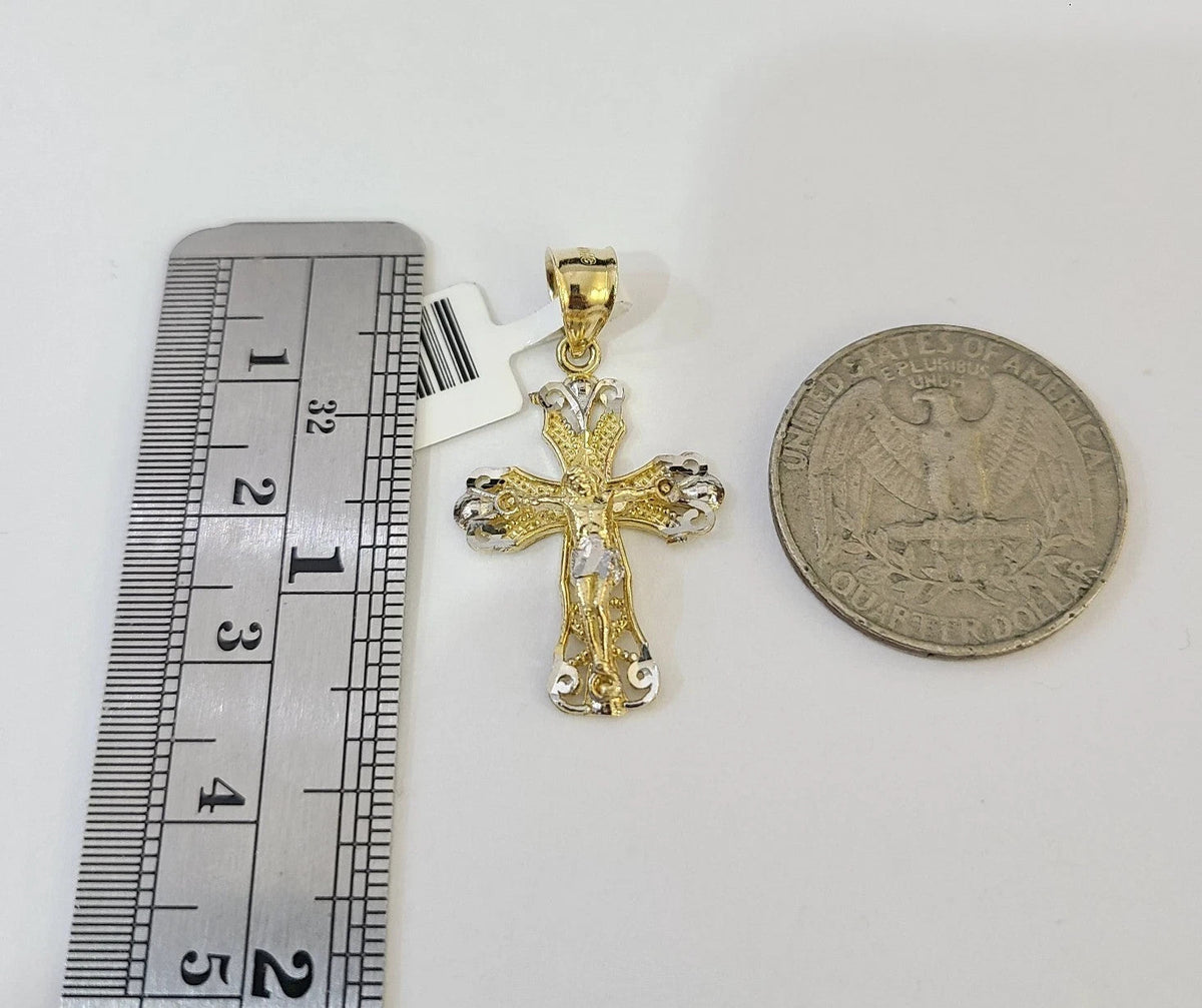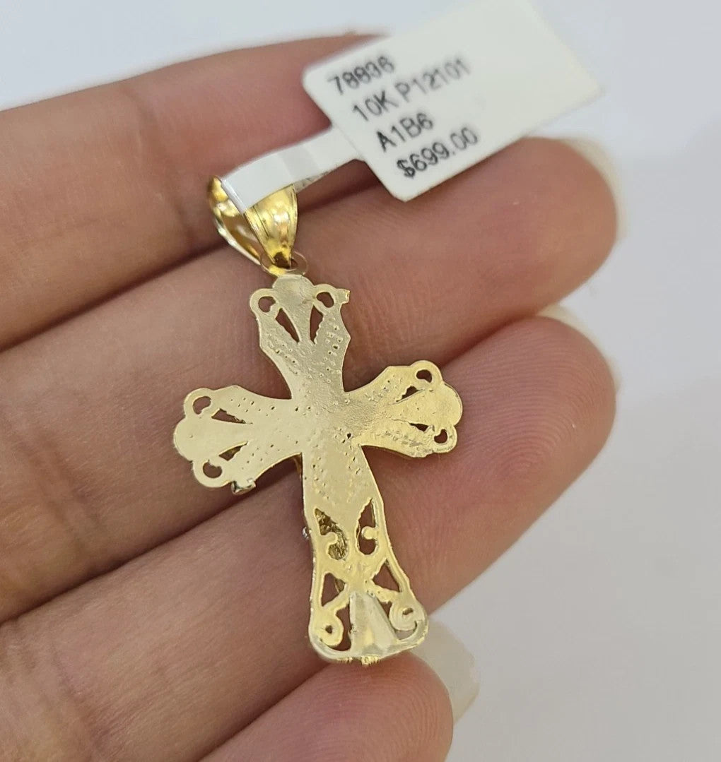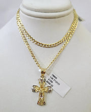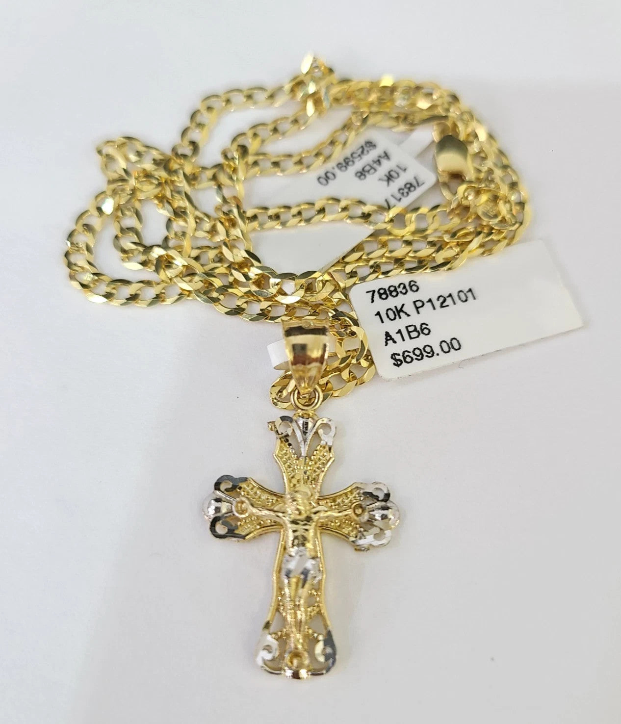 Is Presenting You with This Absolutely Stunning Real 10k Yellow Gold Cuban Curb Chain 3mm, 18"-28" with Jesus Cross Charm, Lobster Lock. The links are 10K GOLD and are very strong. These Beautiful Chains will not tarnish, discolor, or fade because they are Pure 10K Gold. We also have them in various another length. Please feel free to contact us if you have any queries regarding the item.