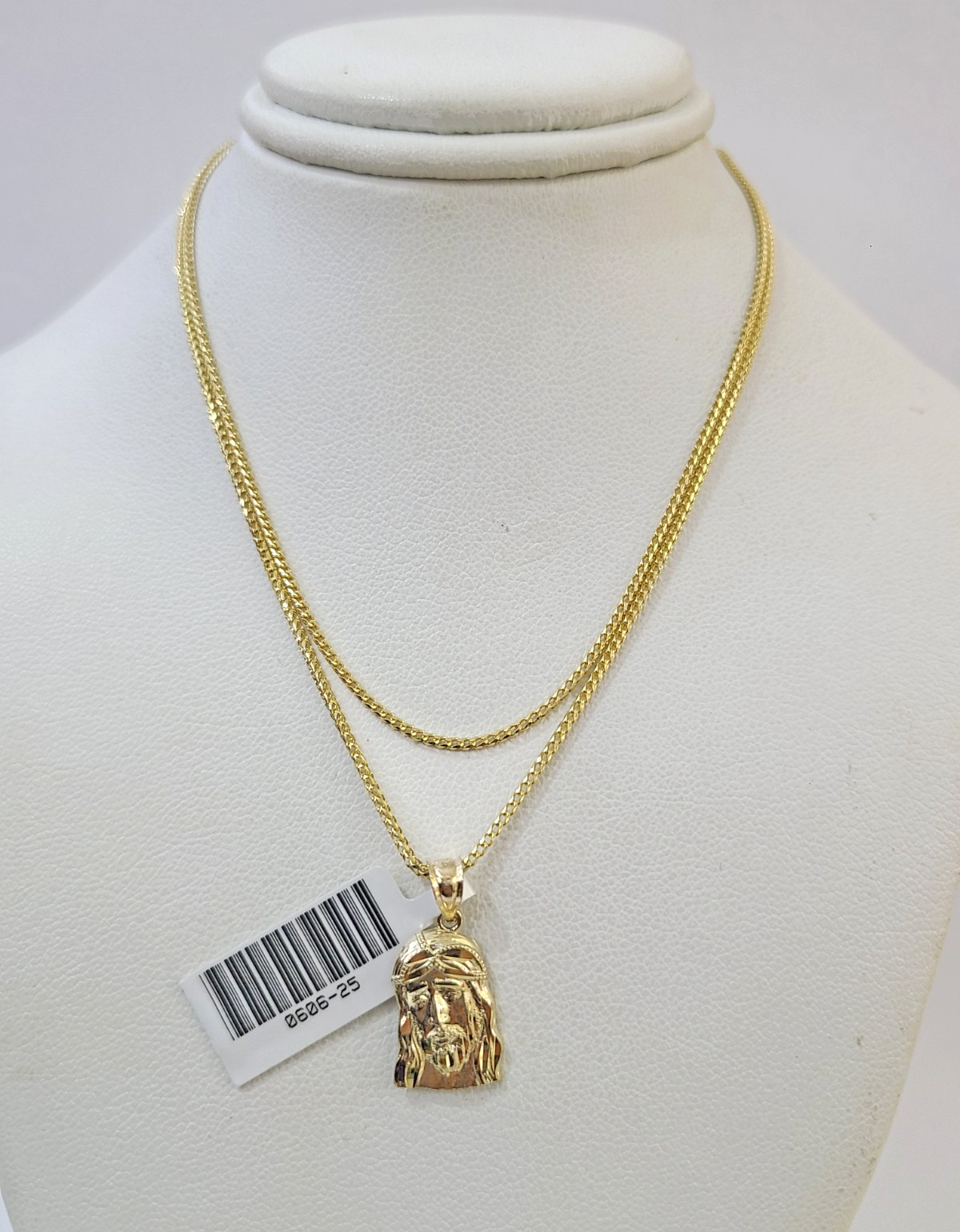 10kt Yellow Gold Franco Chain Necklace Jesus Head Charm Pendant 1mm 16-22 inches