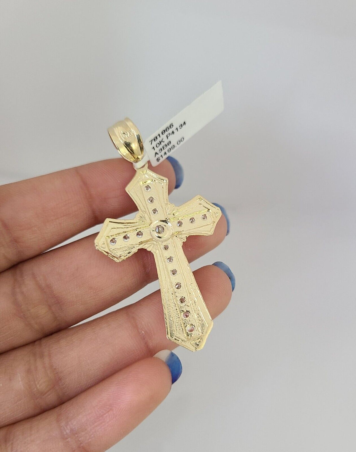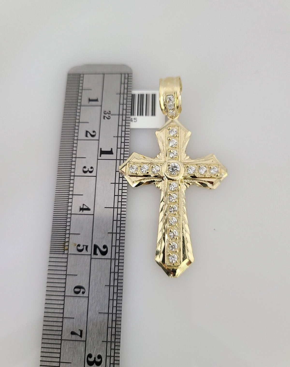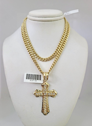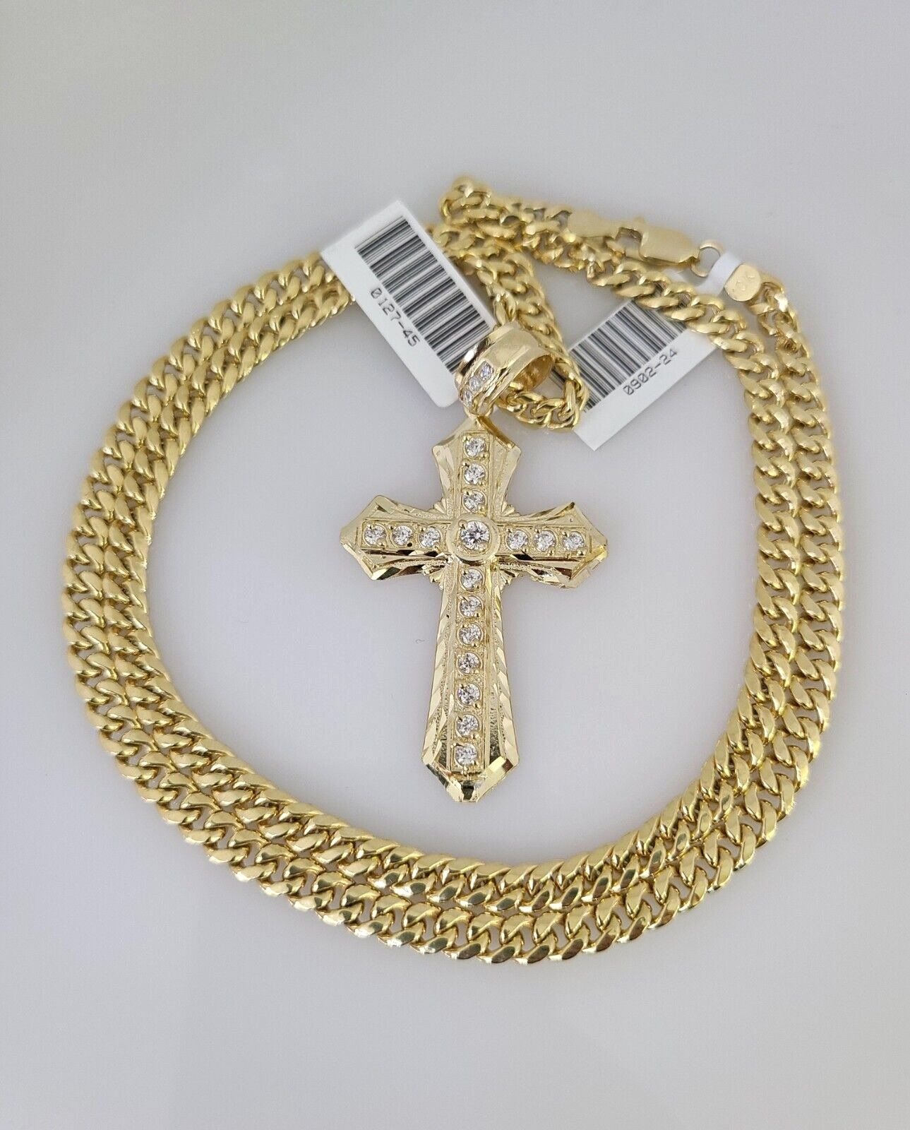10kt Gold Miami Cuban Chain Jesus Cross Charm Pendant 5mm 18-28Inch Necklace