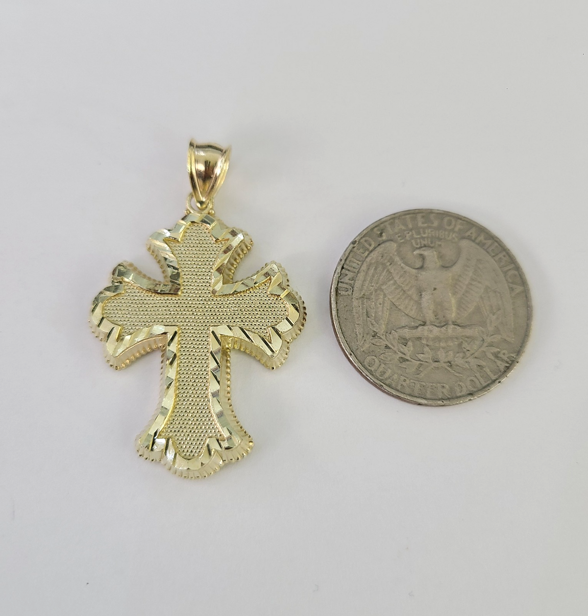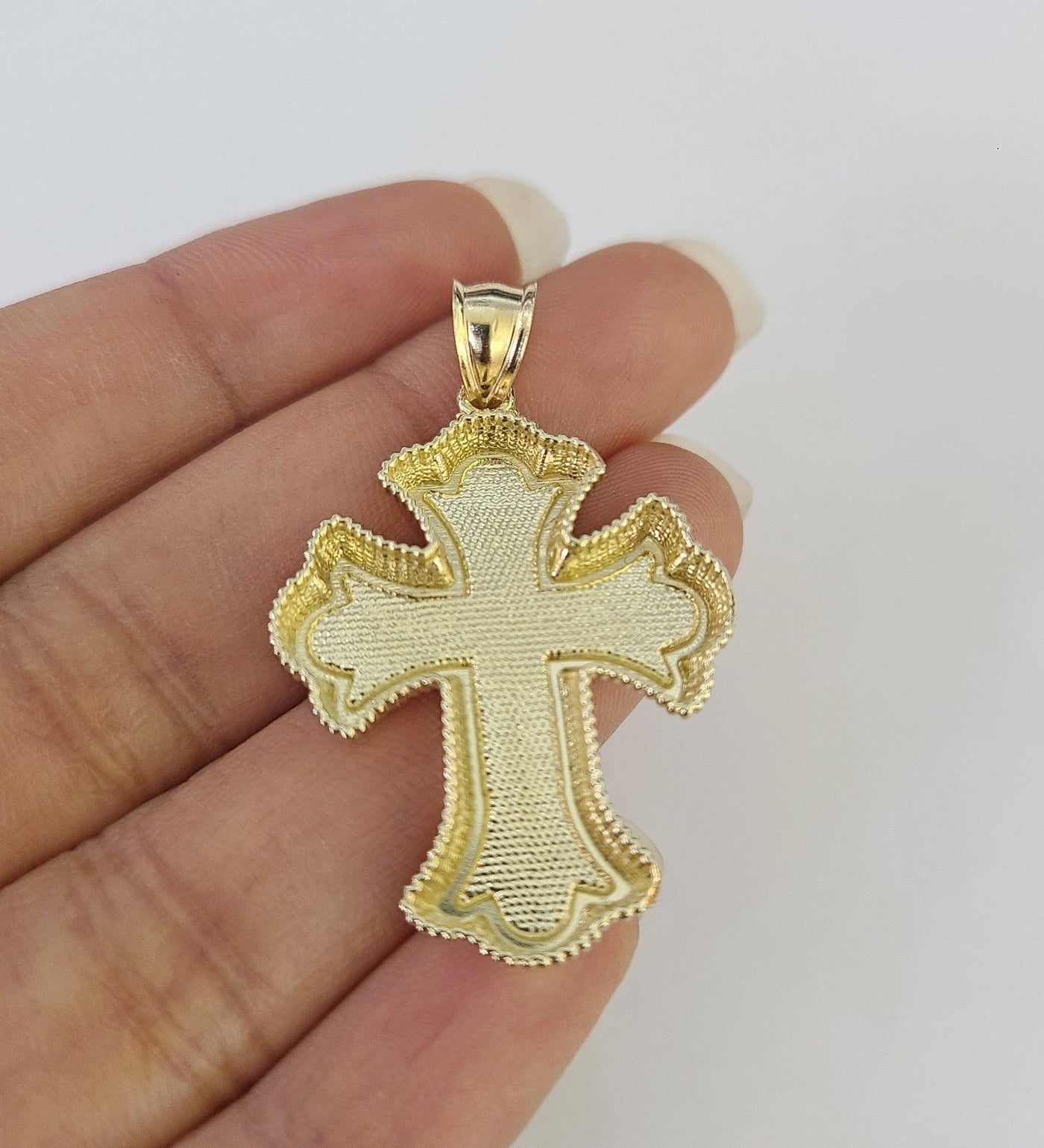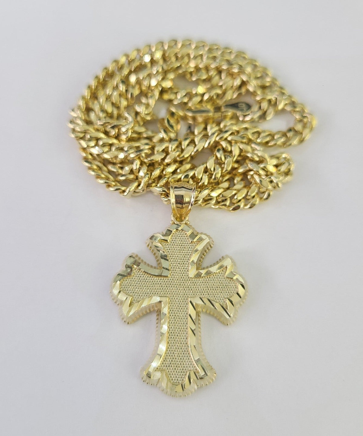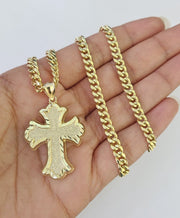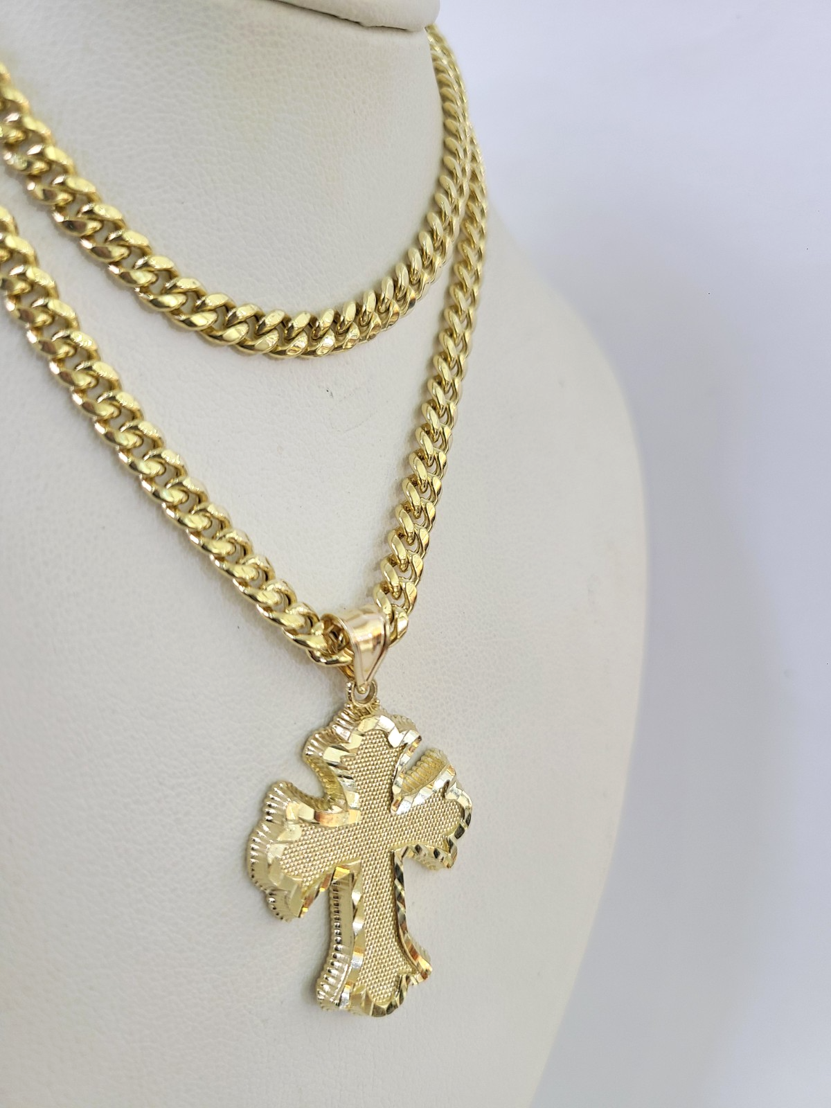 10kt Gold Miami Cuban Chain Jesus Roman Cross Charm Pendant 5mm 18-28 Inch Necklace SALE