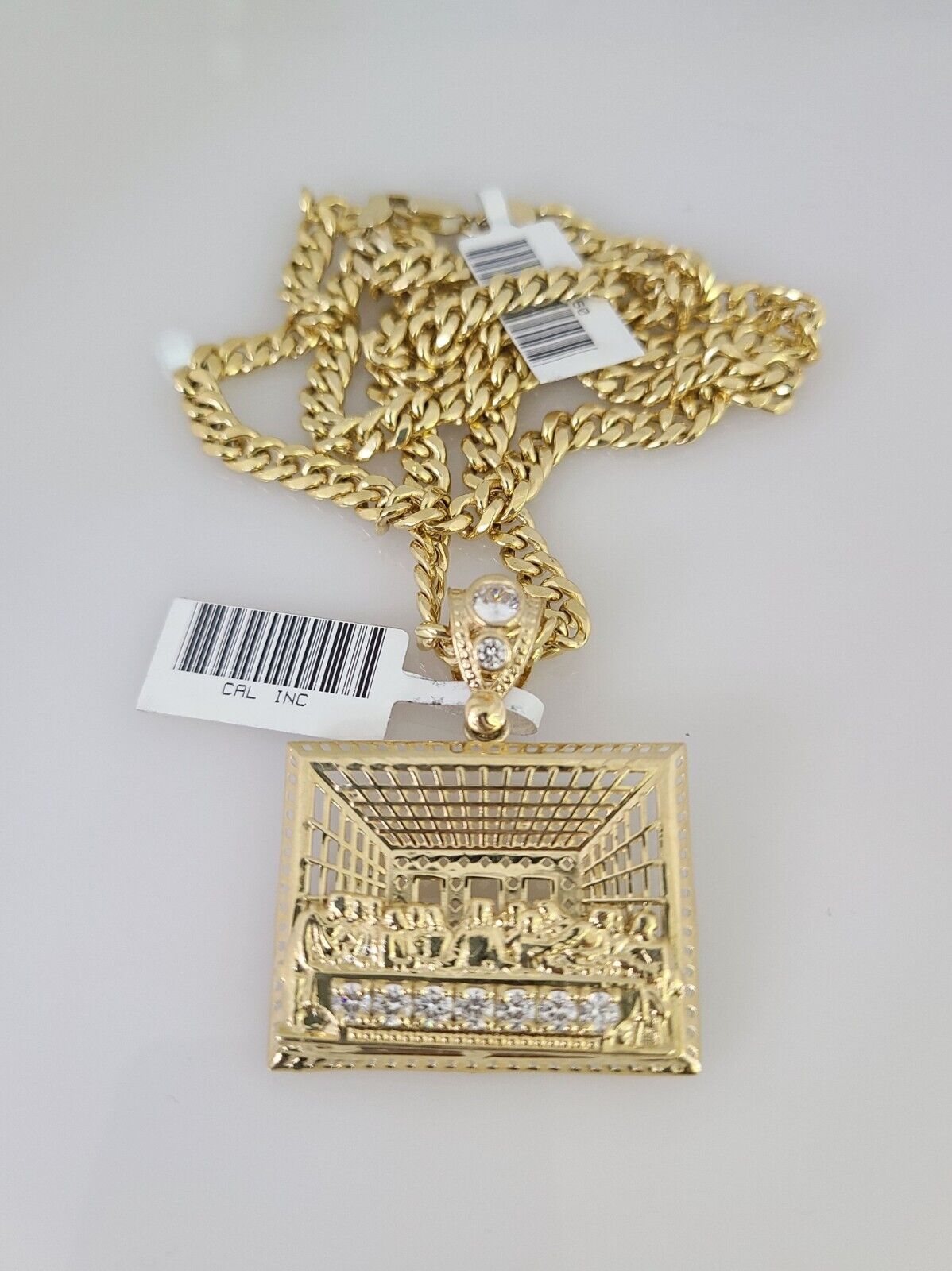 10kt Gold Miami Cuban Chain Last Supper Charm Pendant 5mm 18-28 Inch Necklace - 20 Inch