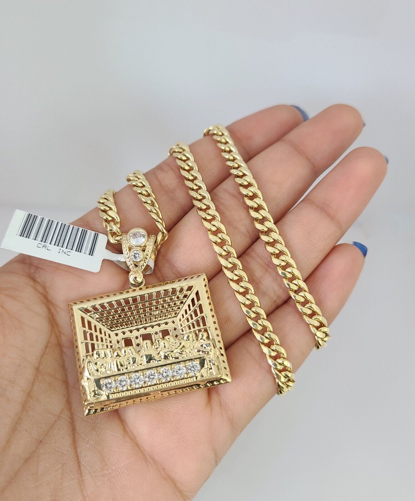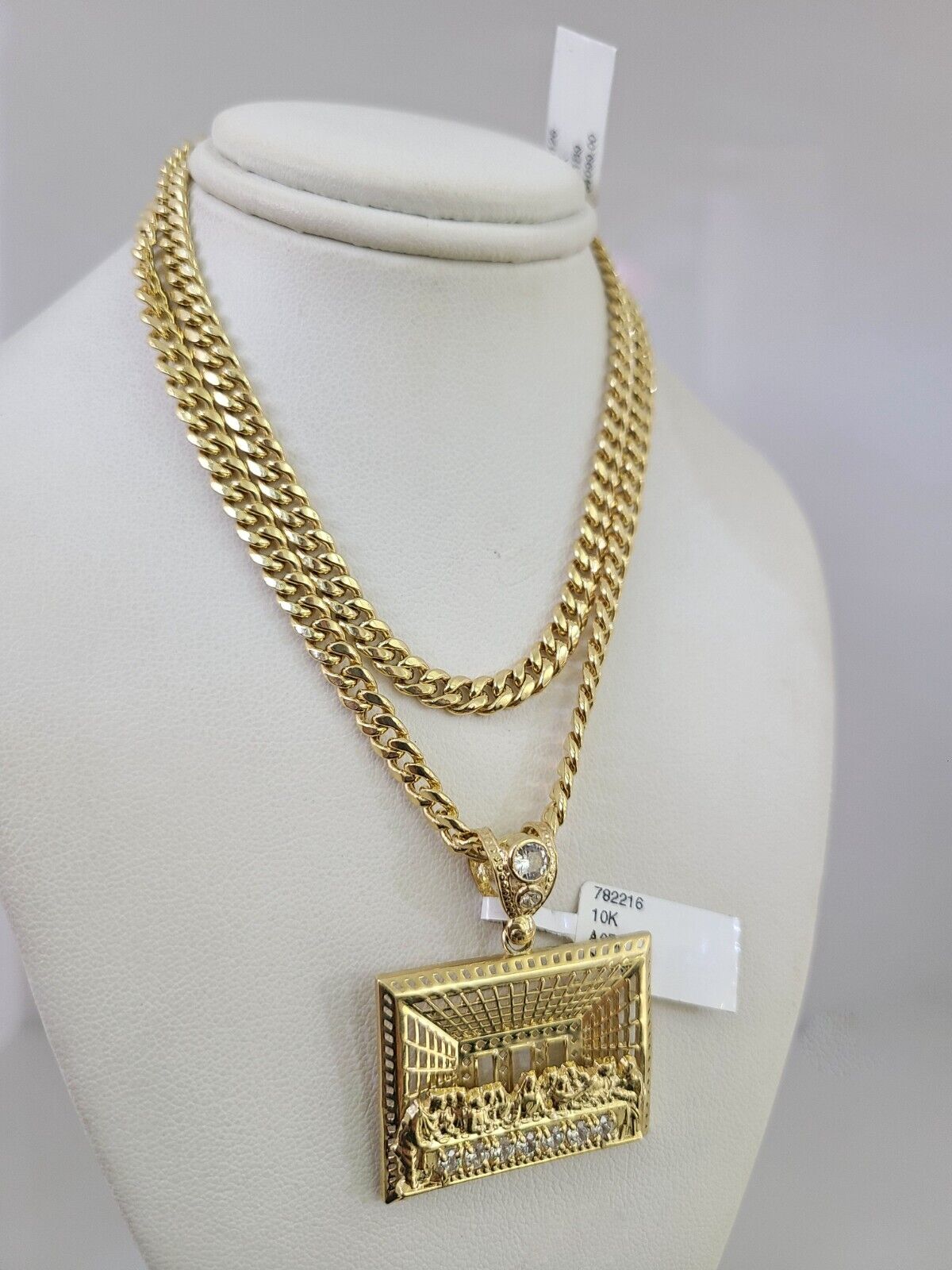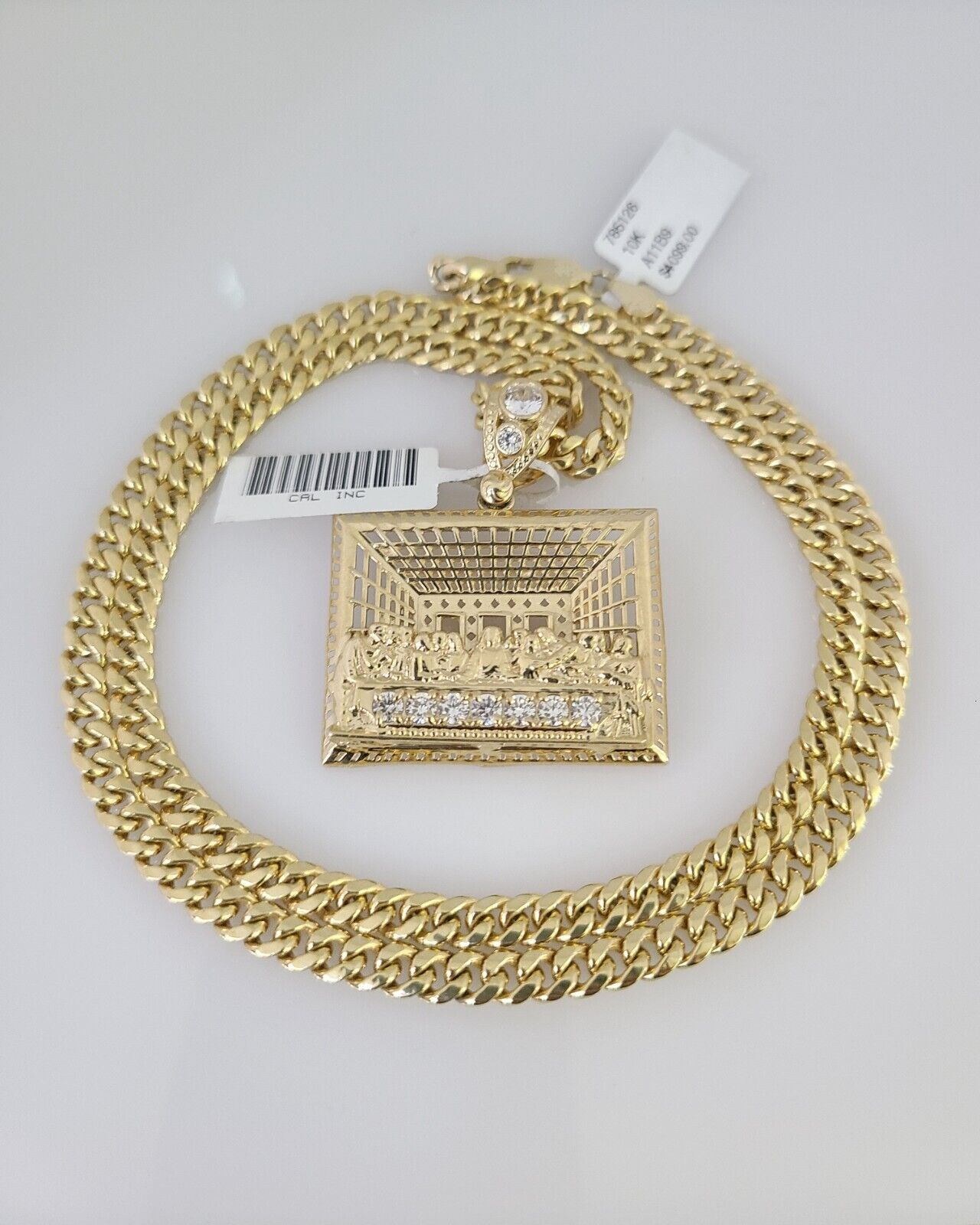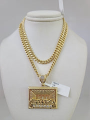10kt Gold Miami Cuban Chain Last Supper Charm Pendant 5mm 18-28 Inch Necklace