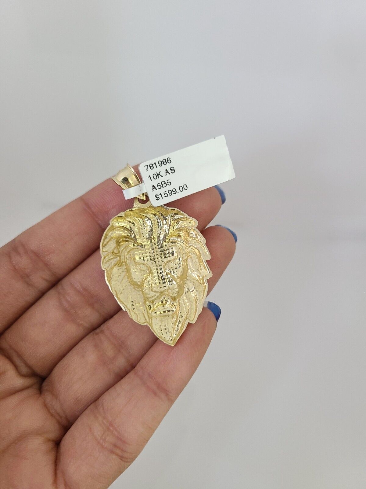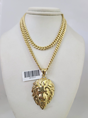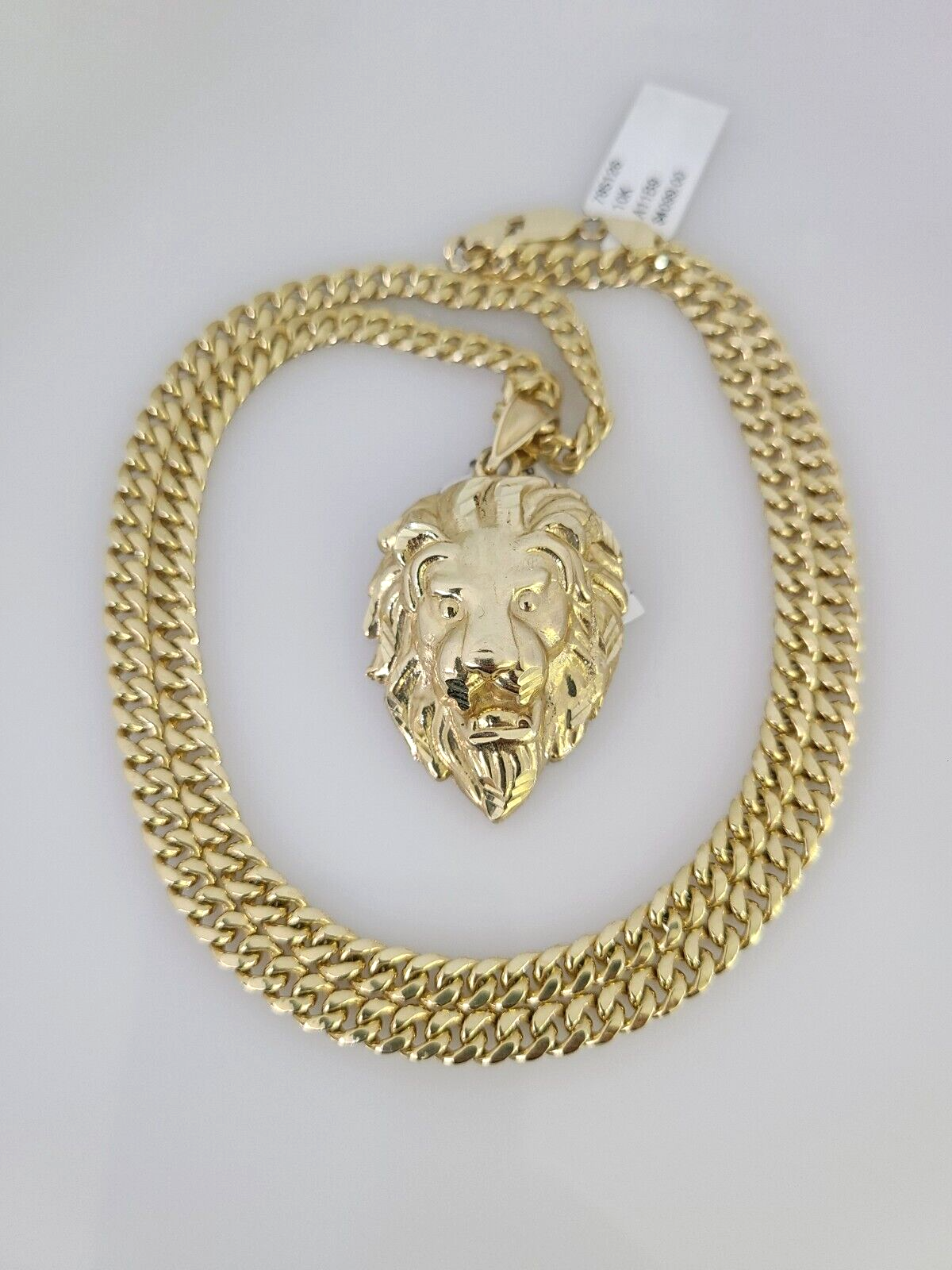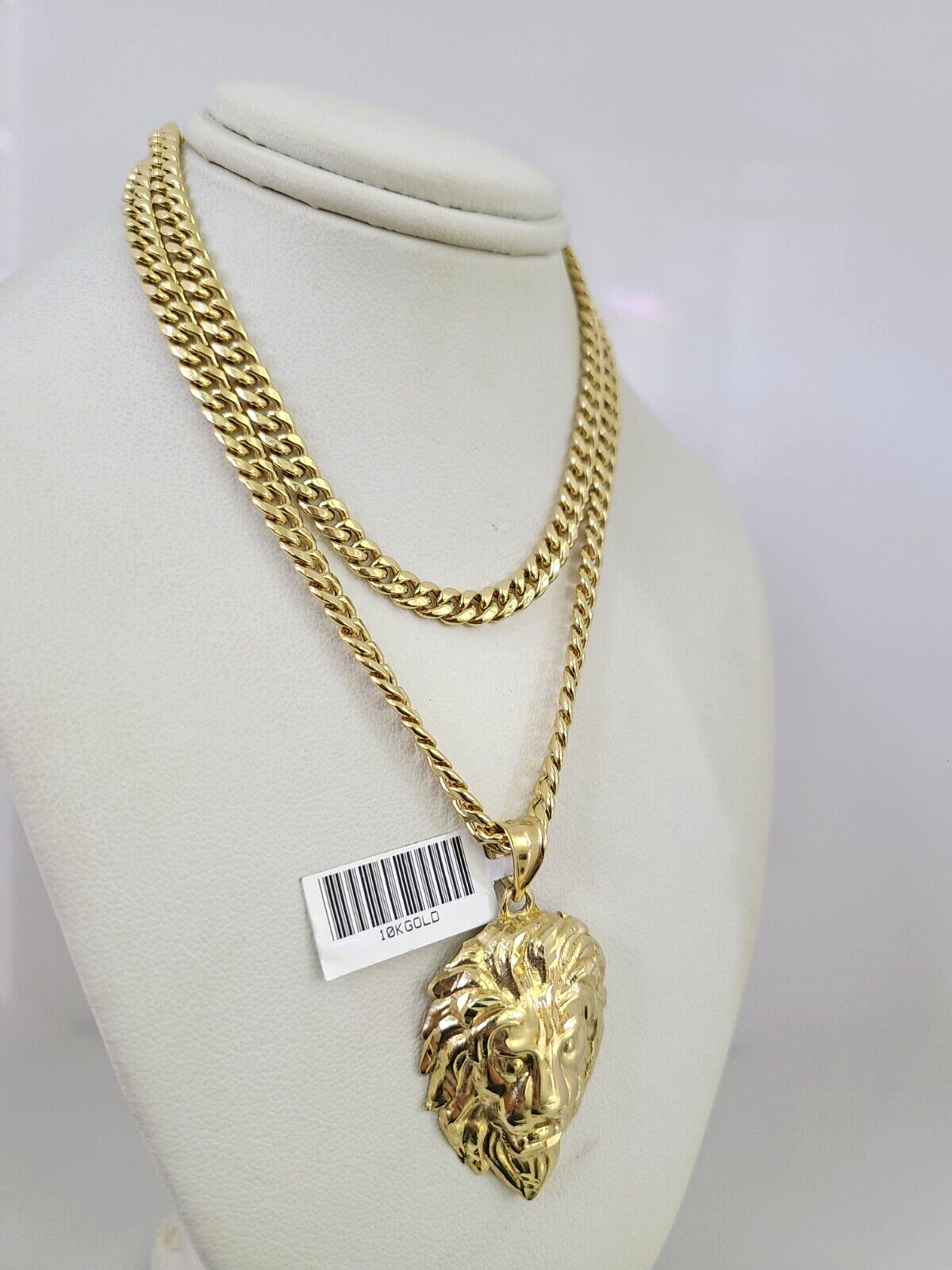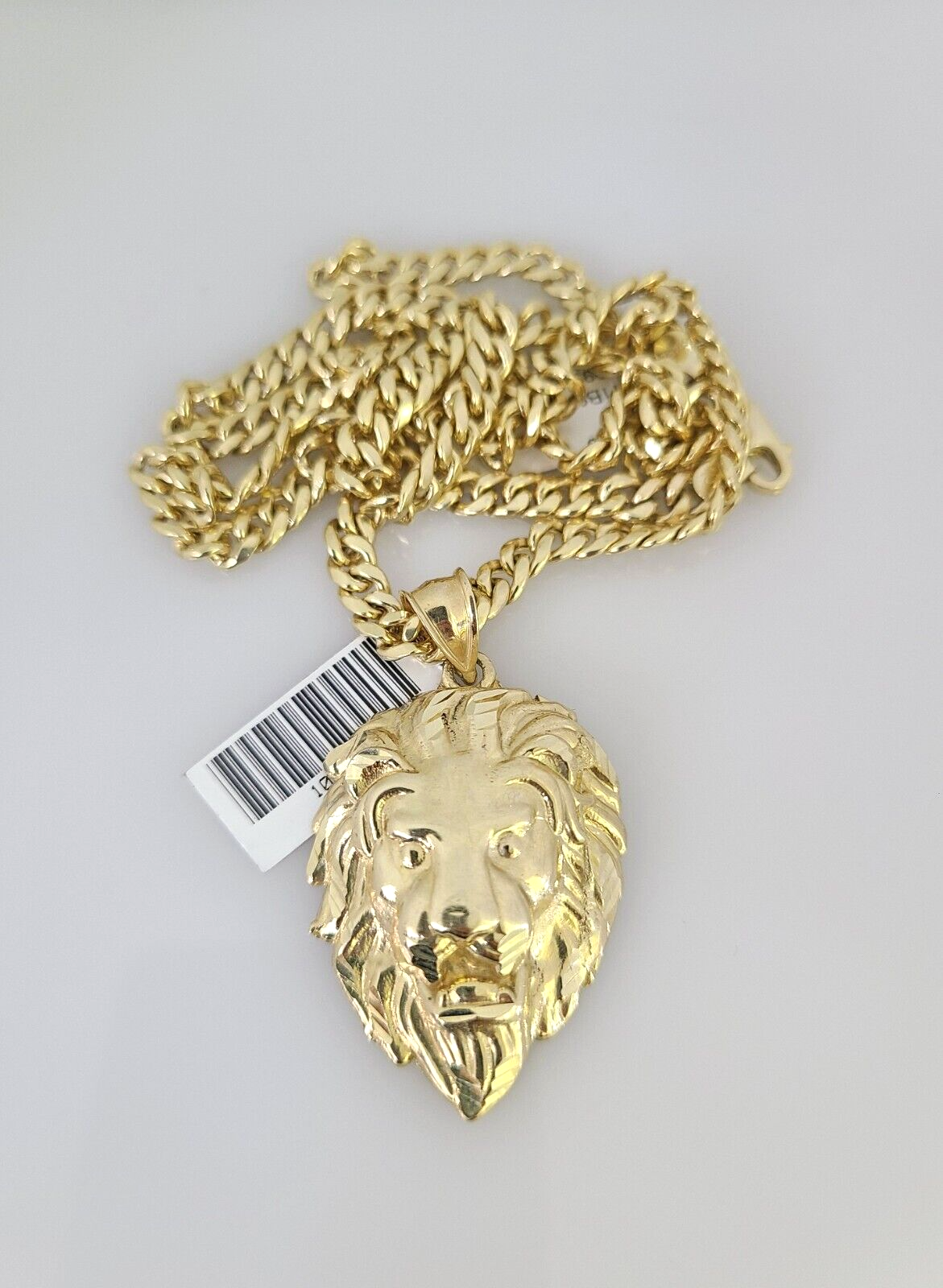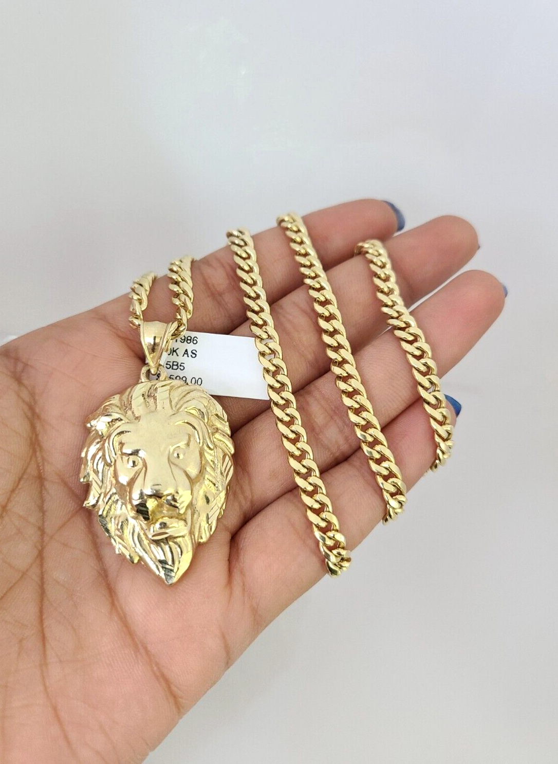 10kt Gold Miami Cuban Chain Lion Head Charm Pendant 5mm 18-28 Inch Necklace SALE