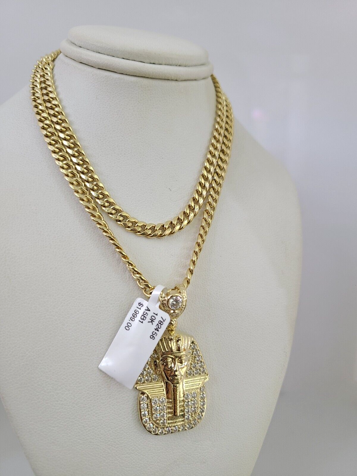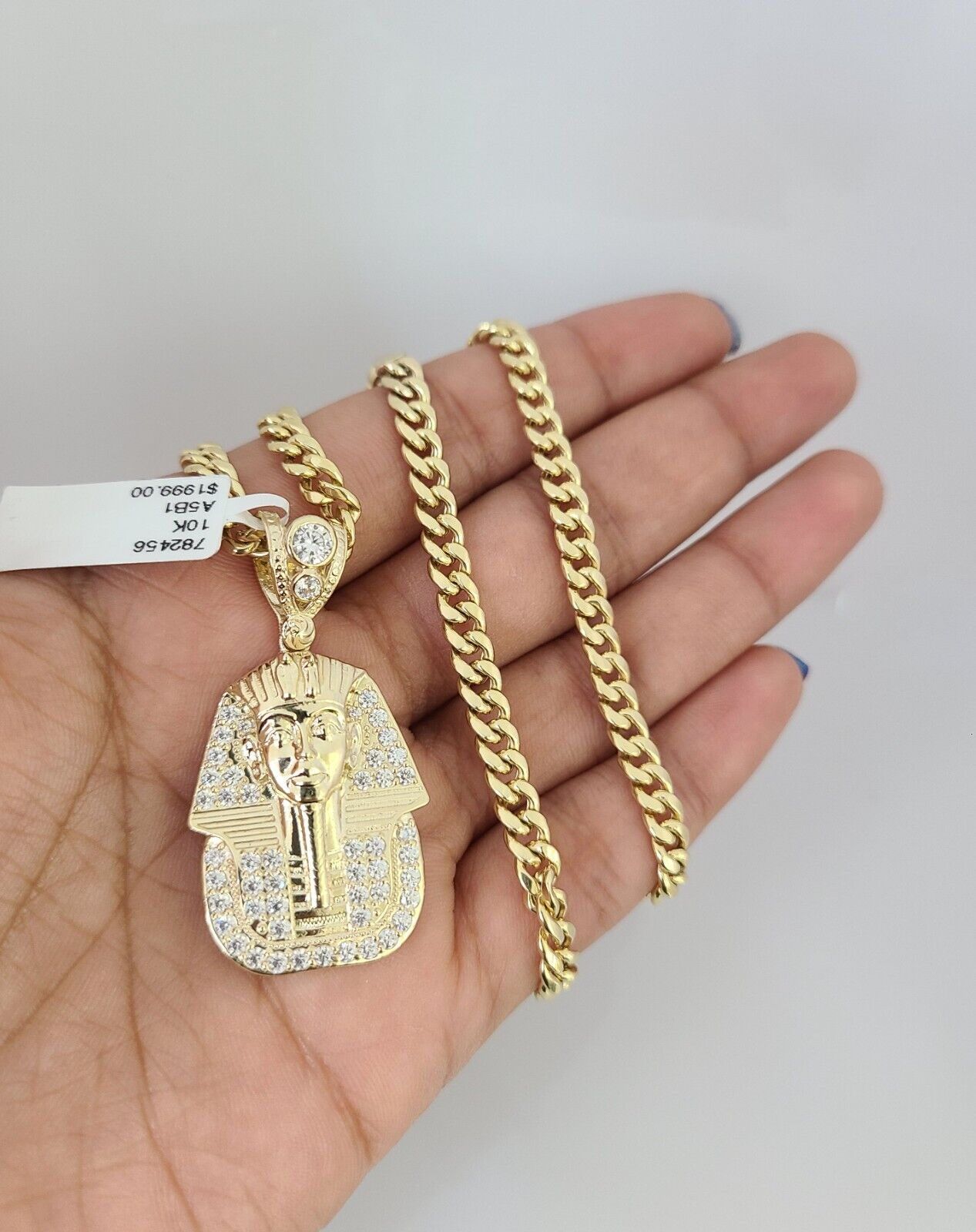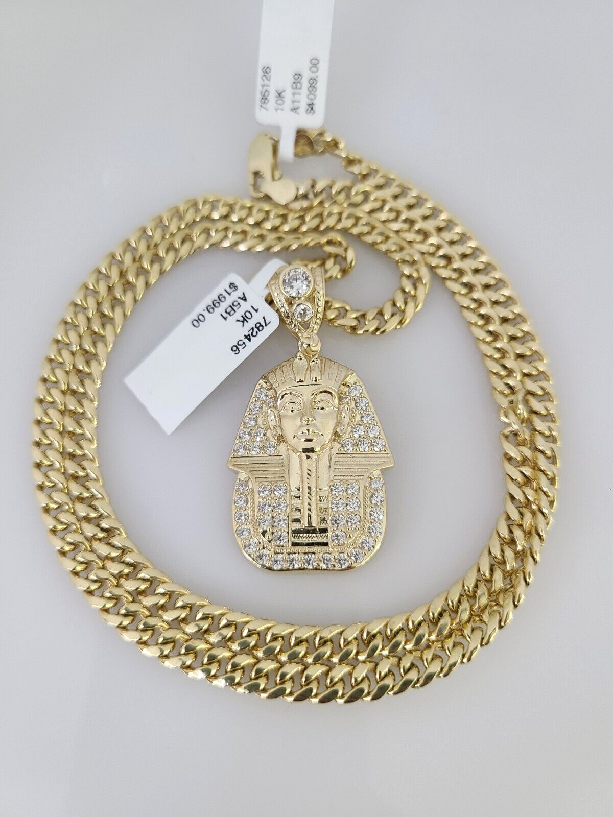 10kt Gold Miami Cuban Chain Pharaoh Charm Pendant 5mm 18-28 Inch Necklace