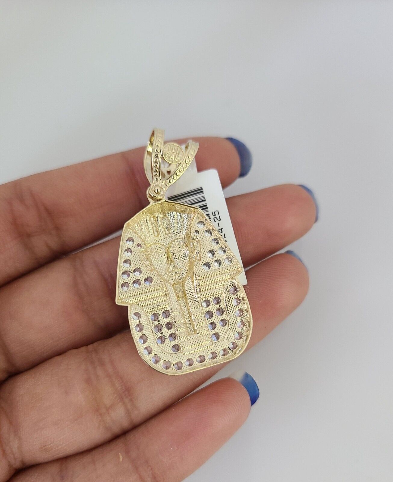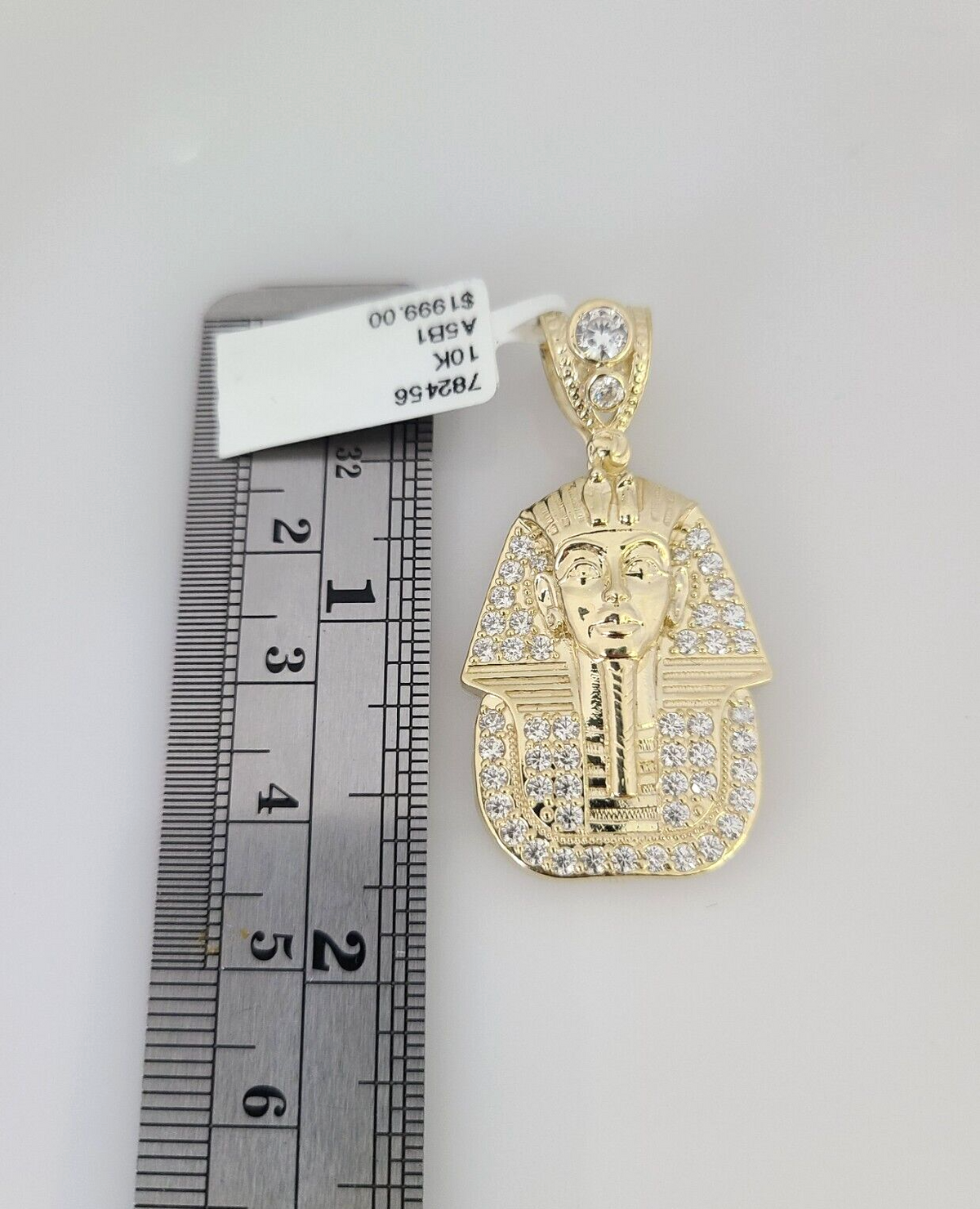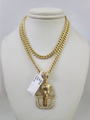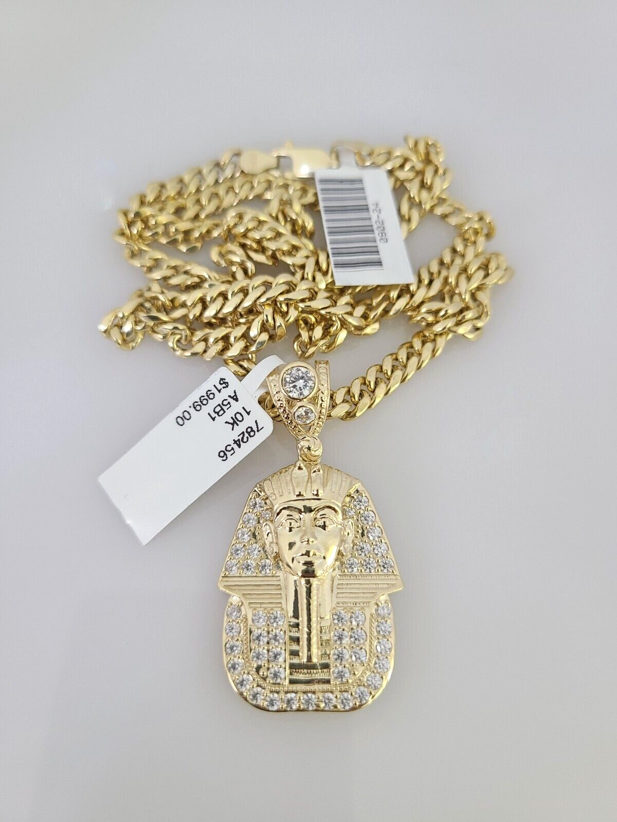10kt Gold Miami Cuban Chain Pharaoh Charm Pendant 5mm 18-28 Inch Necklace