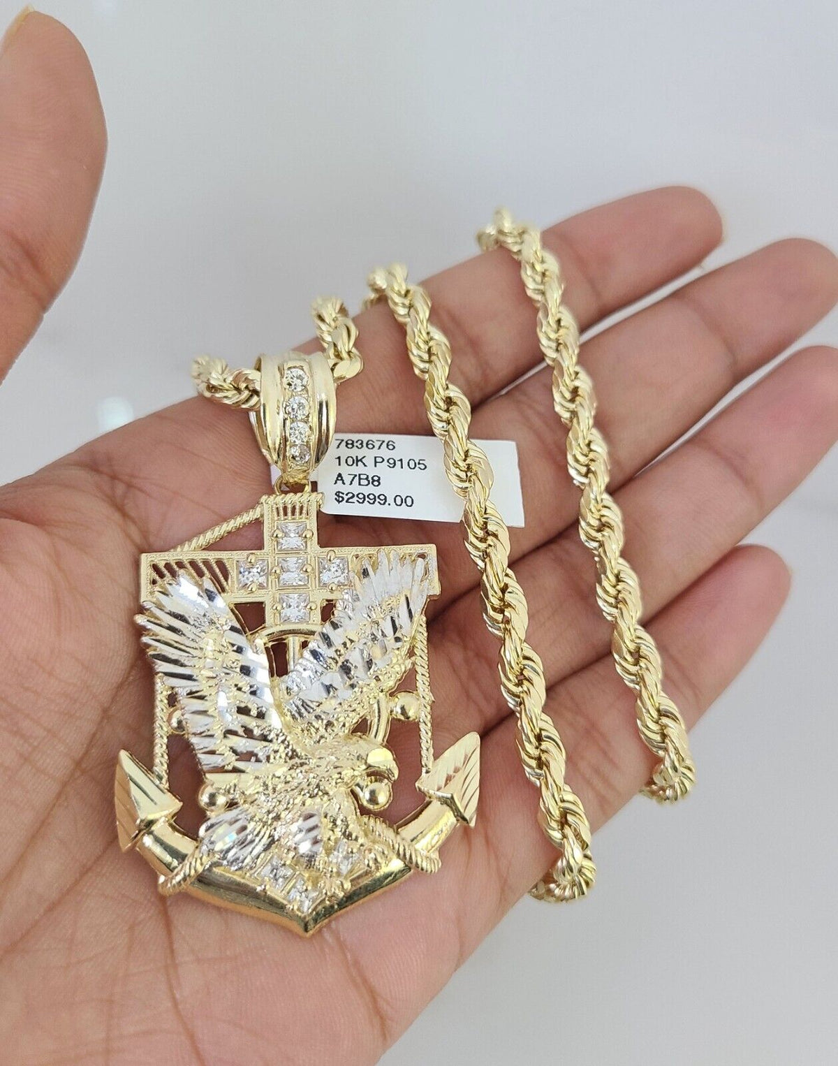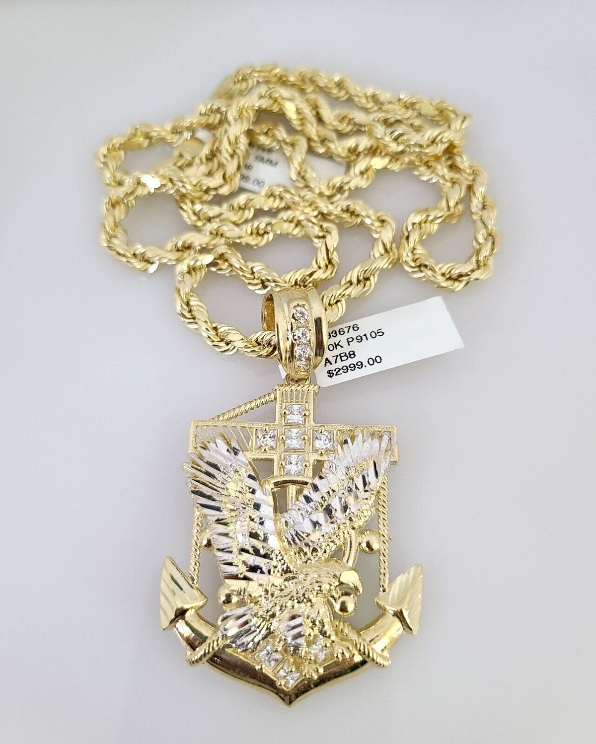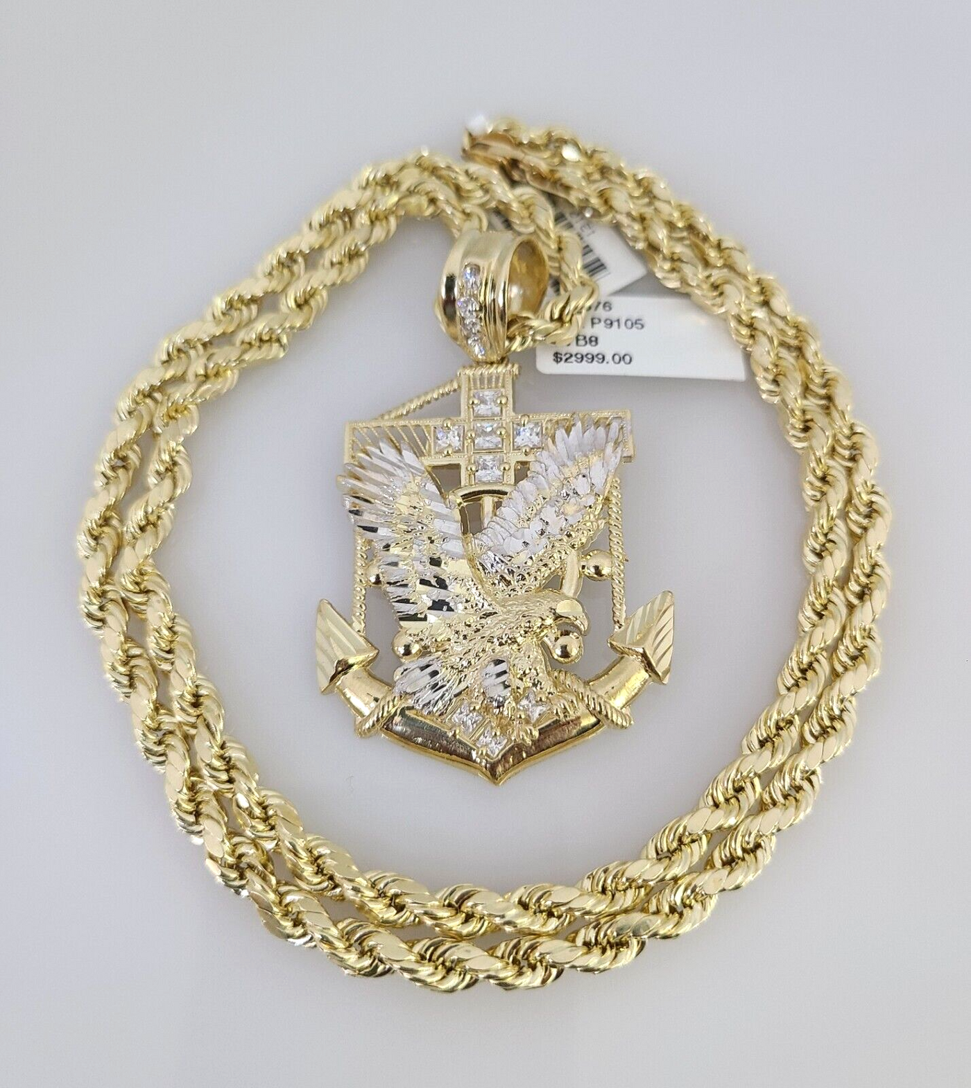 10kt Gold Rope Chain Eagle Anchor Pendant Charm Set 18"-30'' Inch 5mm Necklace - 22 inch with charm