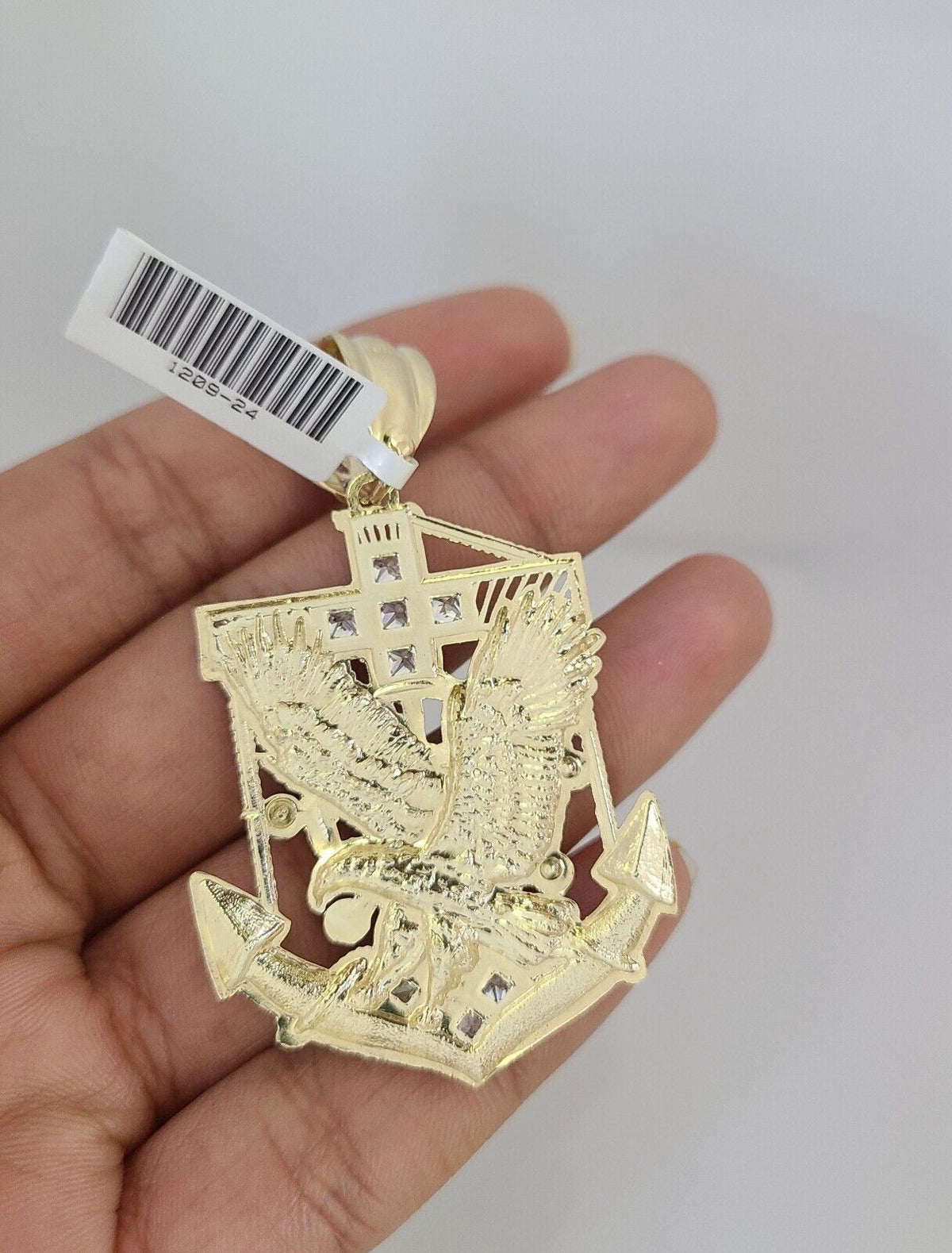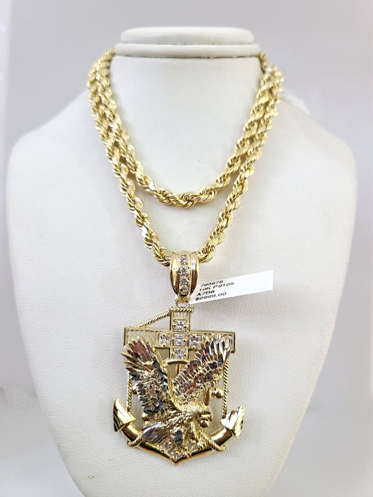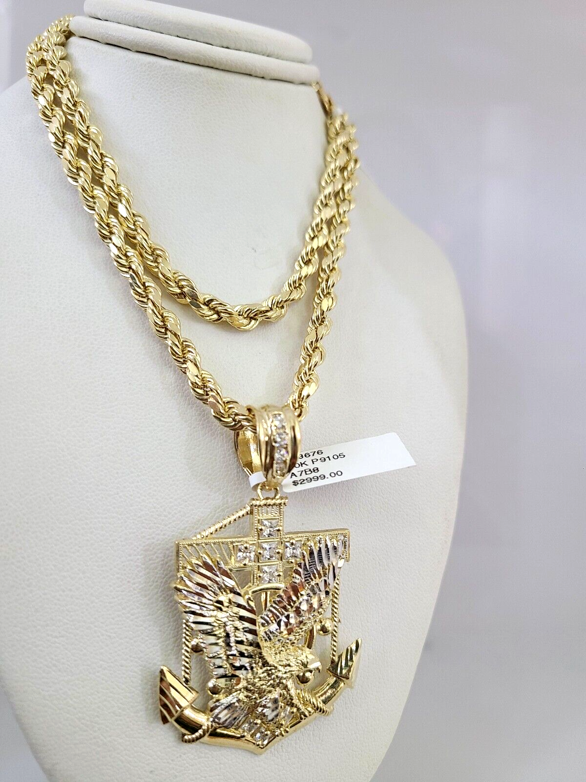 10kt Gold Rope Chain Eagle Anchor Pendant Charm Set 18"-30'' Inch 5mm Necklace - 22 inch with charm