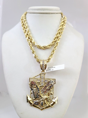 10kt Gold Rope Chain Eagle Anchor Pendant Charm Set 18"-30'' Inch 5mm Necklace
