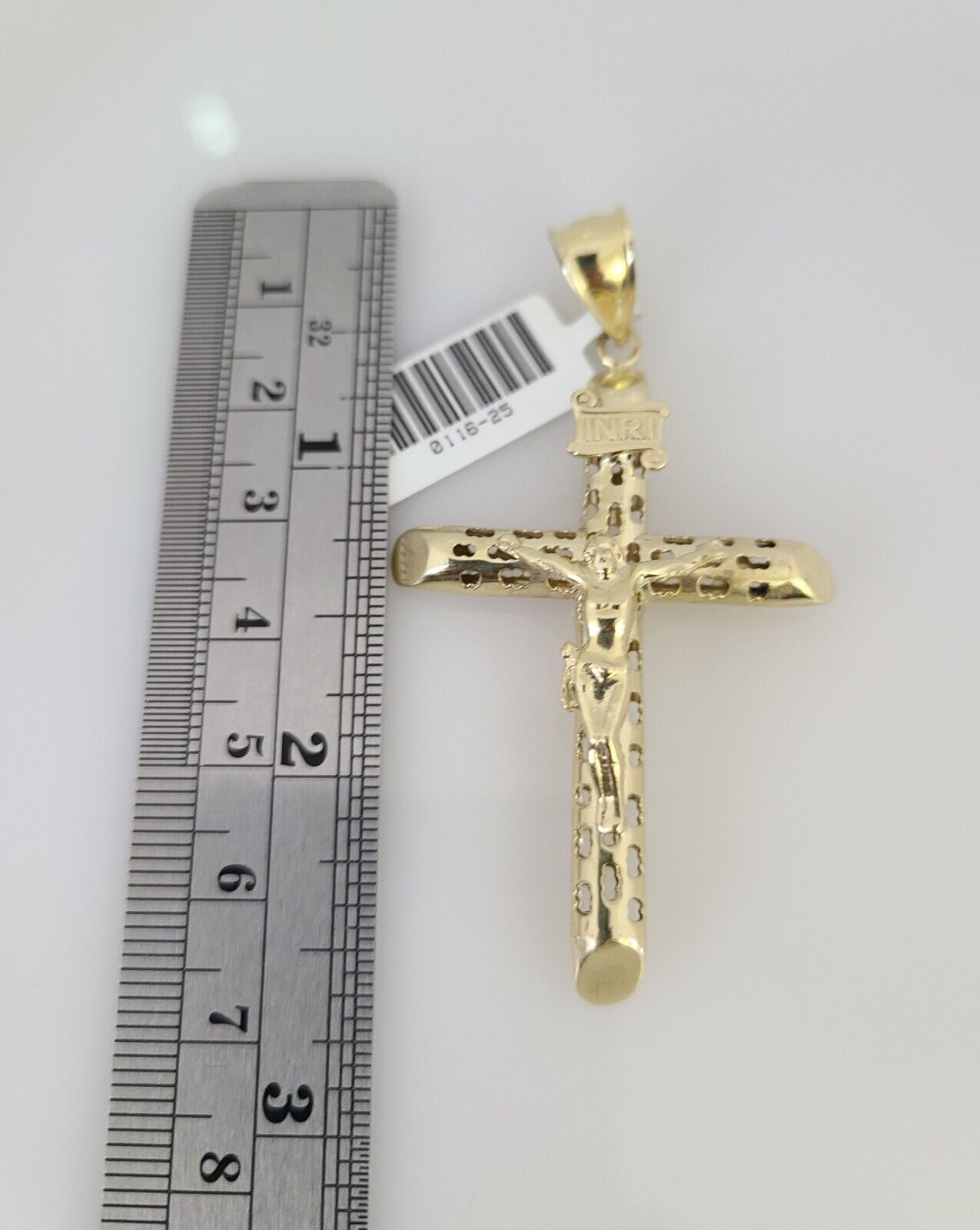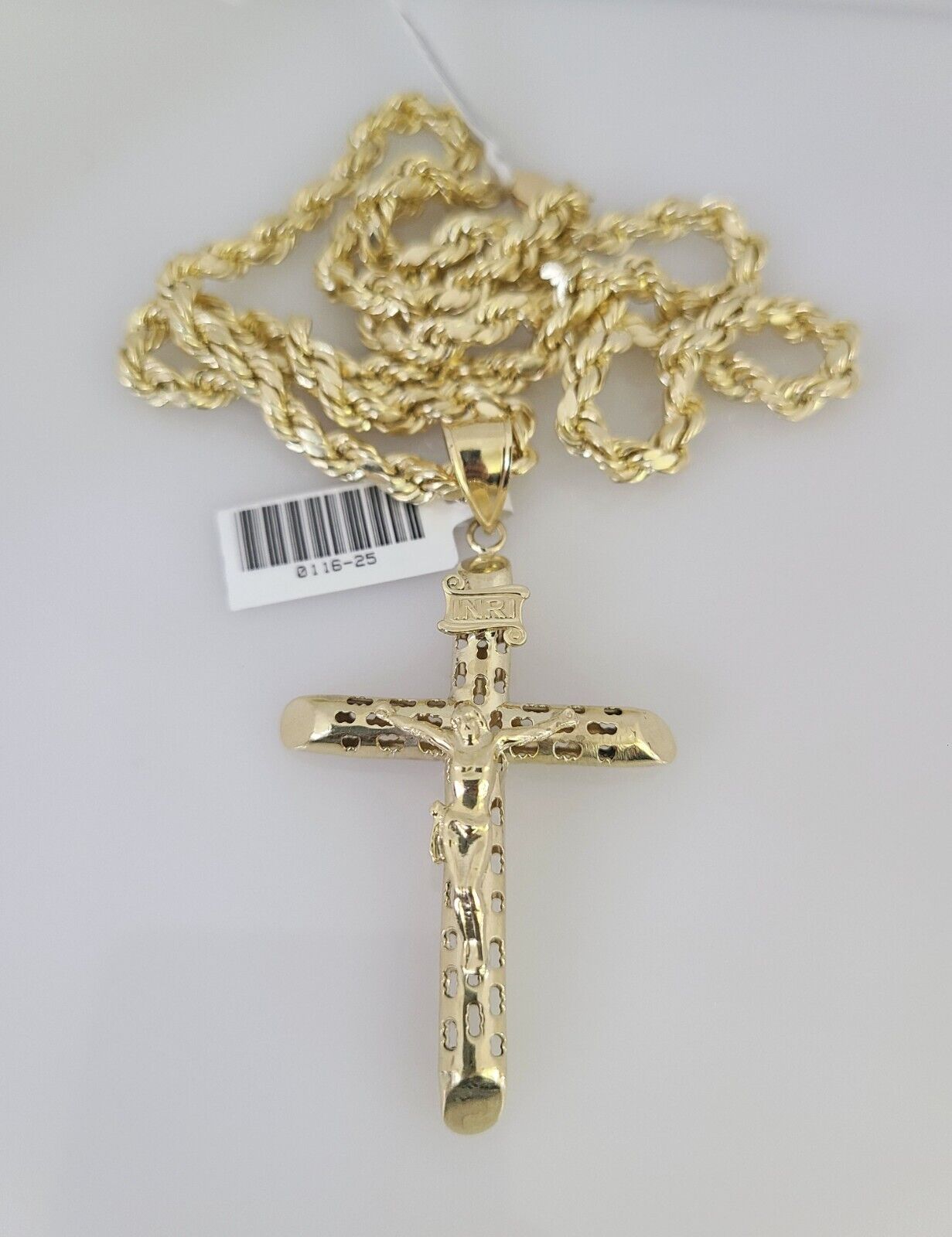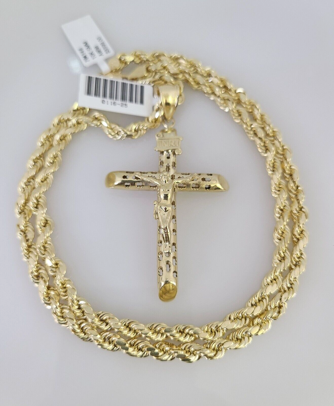 Genuine 10k Yellow Gold Rope Chain 18-30 Inch 5mm Necklace With INRI Jesus Cross Charm design as a SET. The Various length of the Chain are 18-30 Inches . If you are not happy with the way it looks or feels, we do offer 30 - Days FREE Return shipping. Contact us for more information.