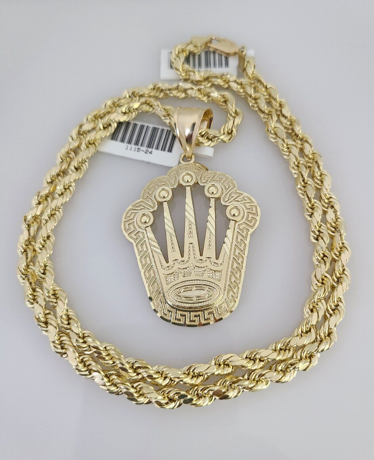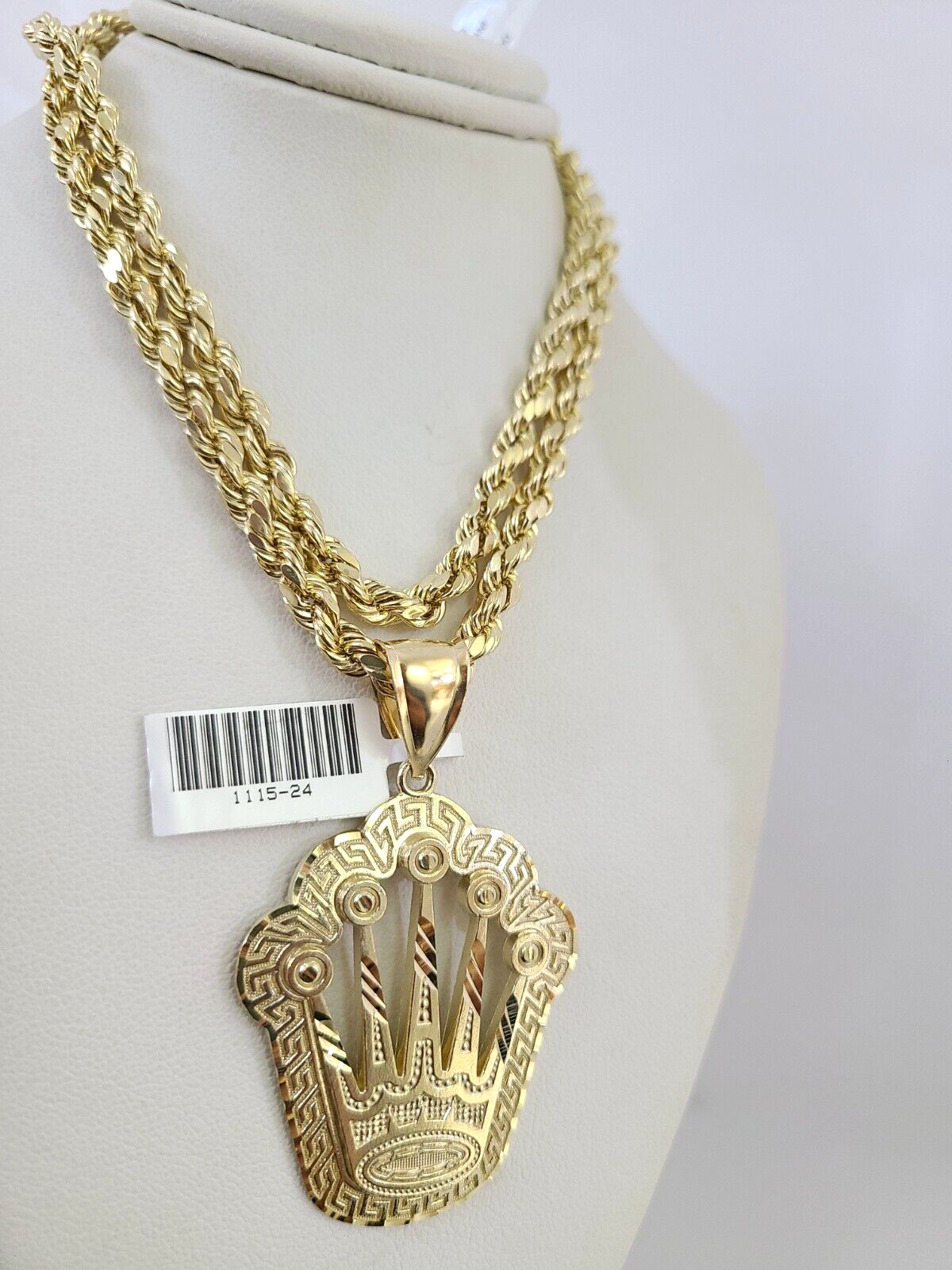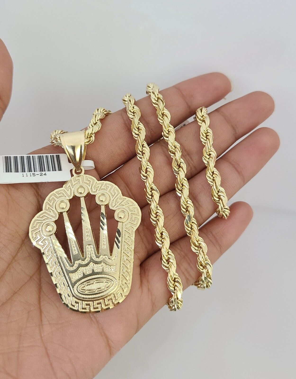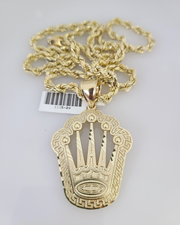 10kt Gold Rope Chain King Crown Pendant Charm Set 18"-30'' Inch 5mm Necklace