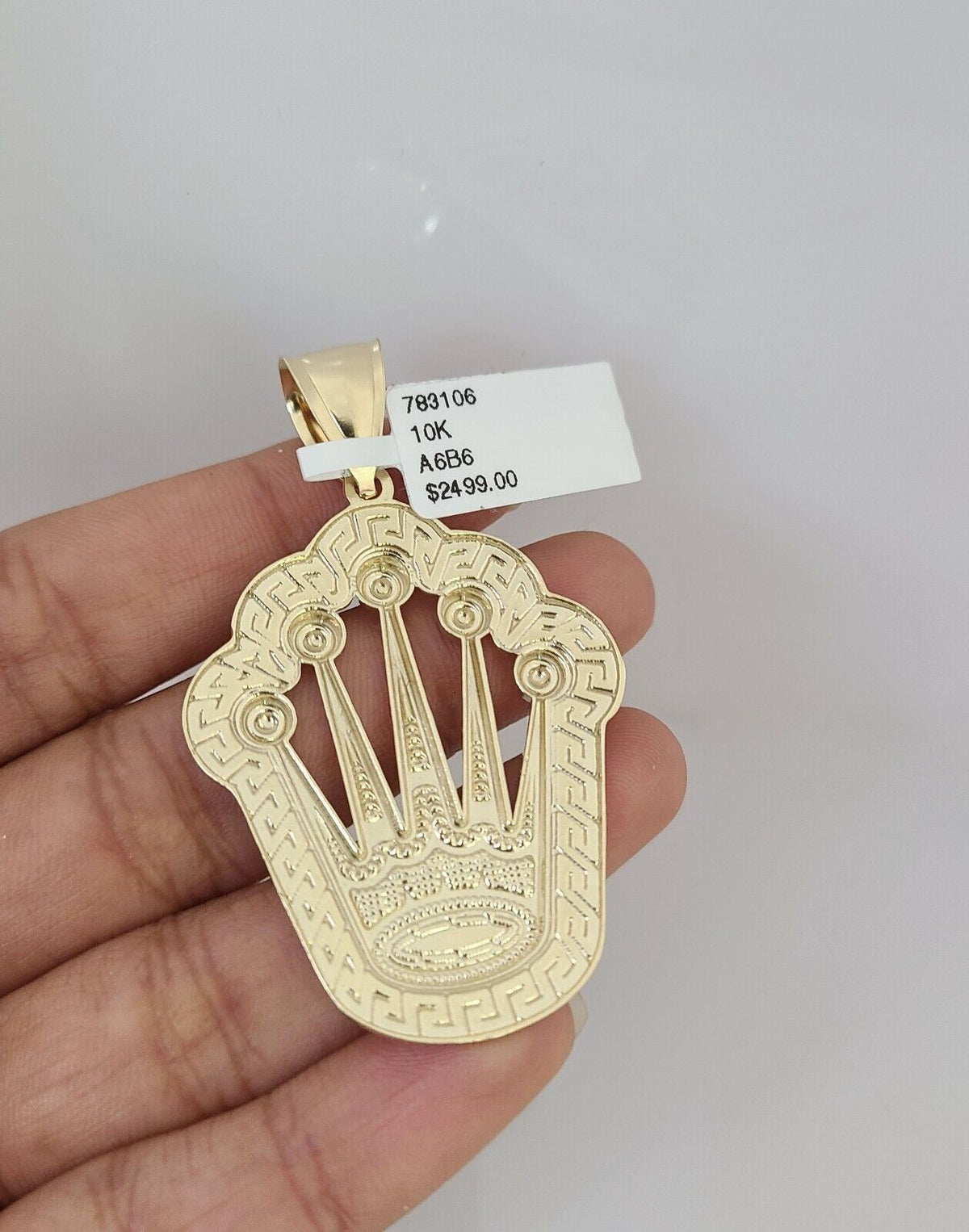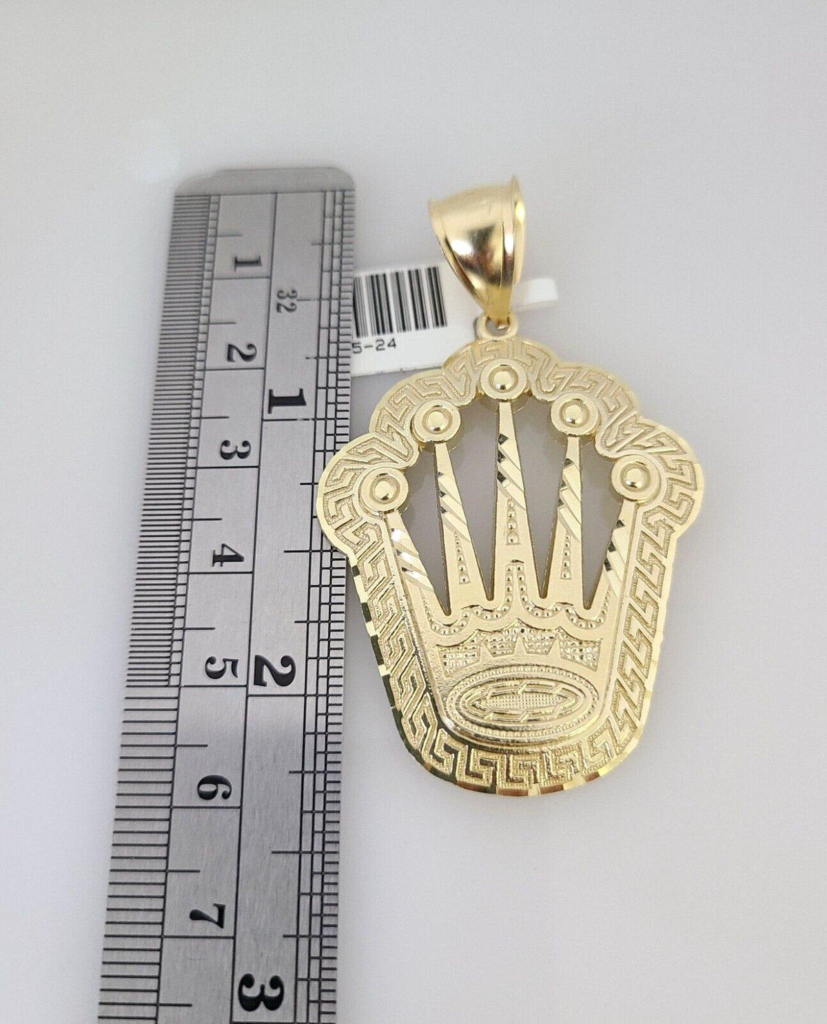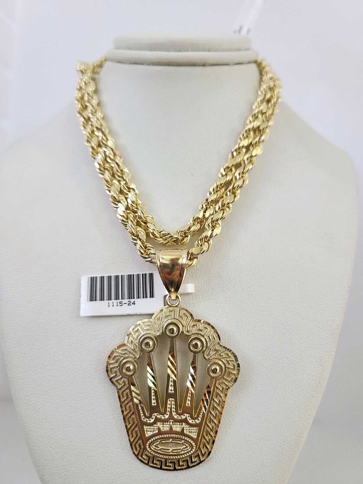 10kt Gold Rope Chain King Crown Pendant Charm Set 18"-30'' Inch 5mm Necklace