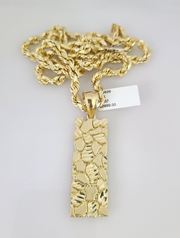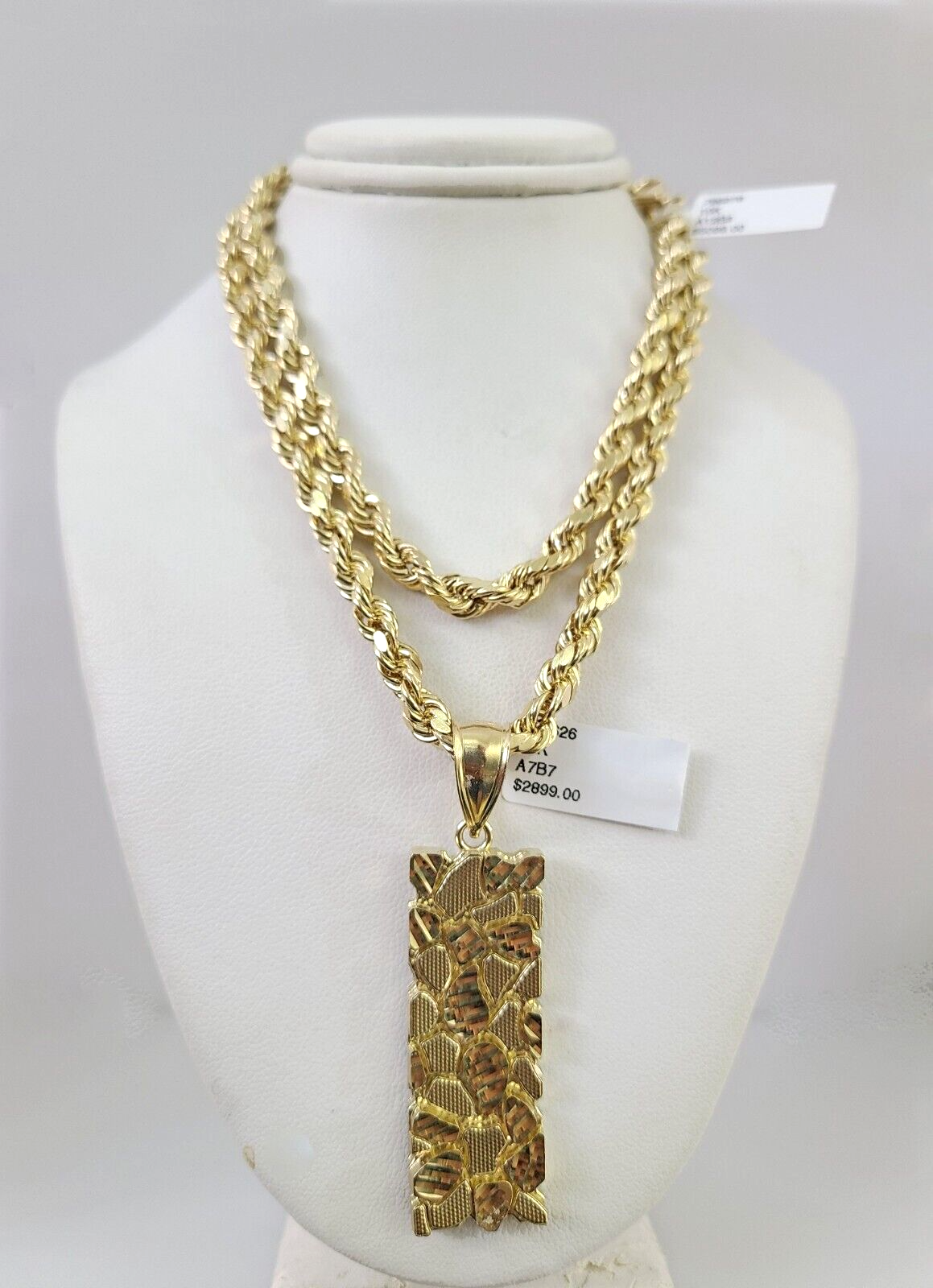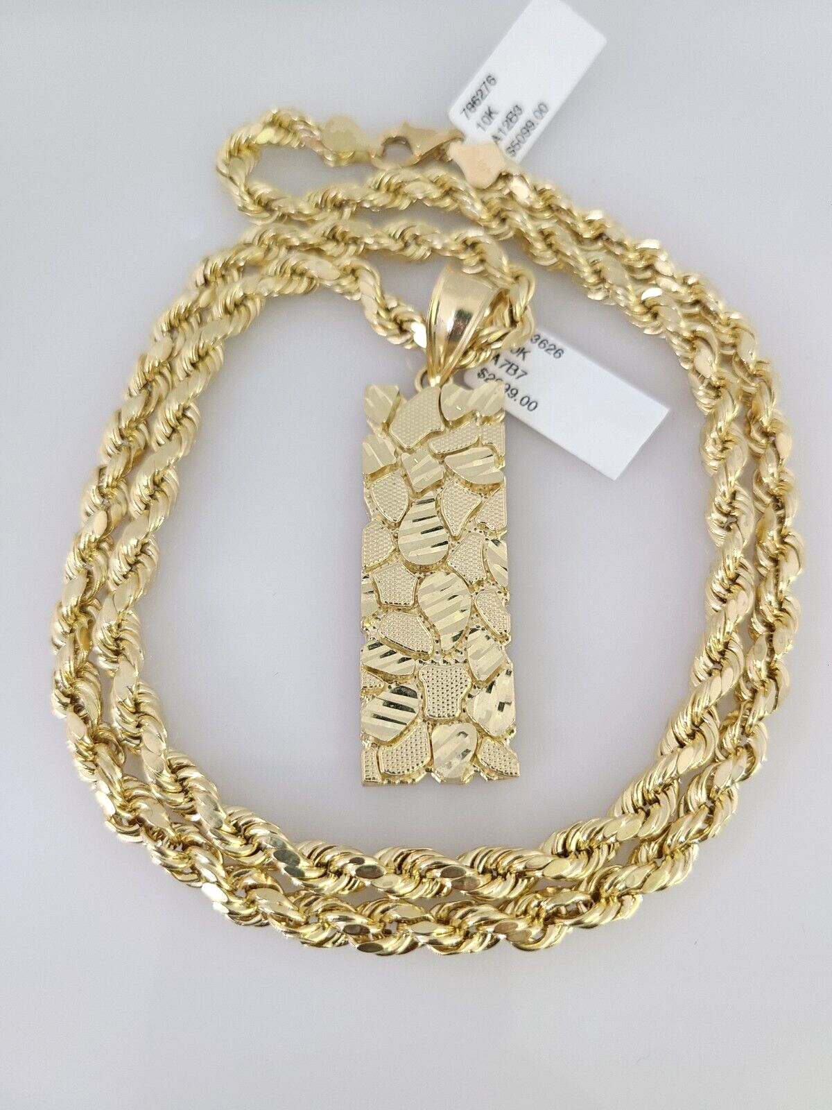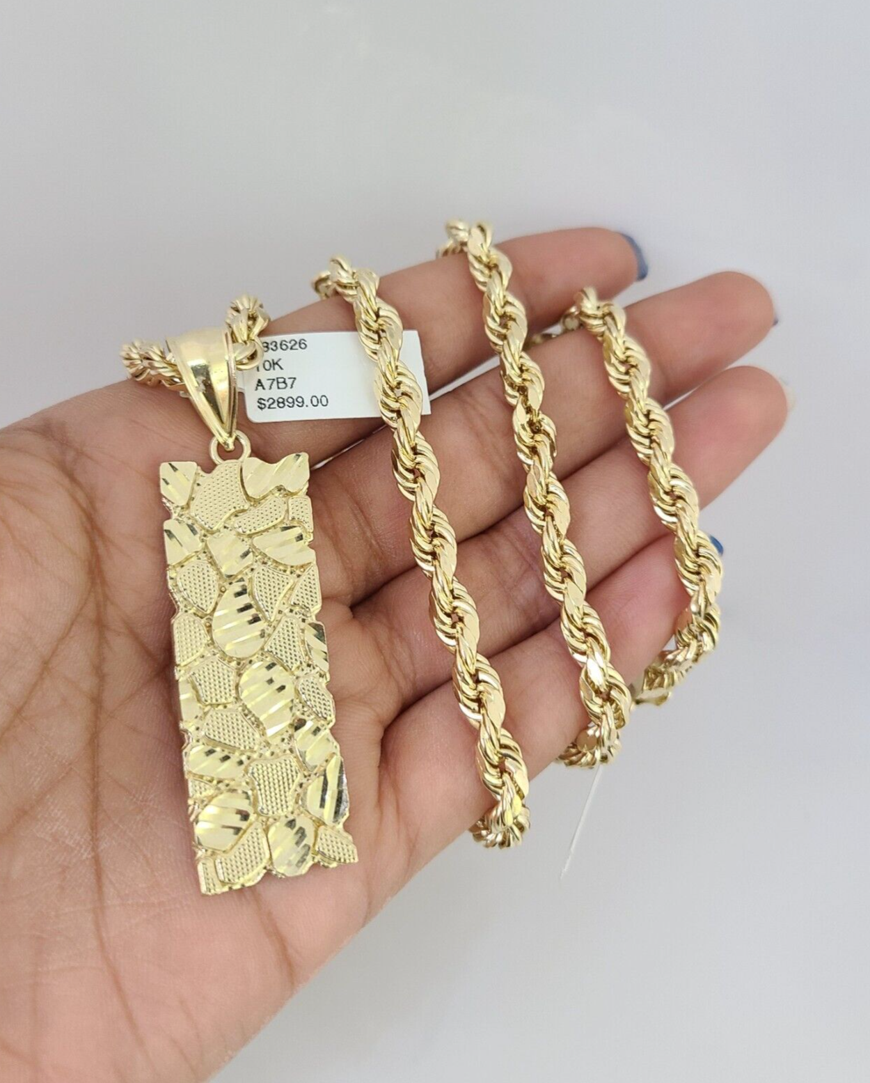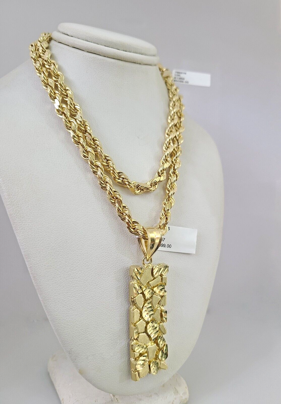 Genuine 10k Yellow Gold Rope Chain 18-30 Inch 6mm Necklace with Nugget Charm design as a SET. The Various length of the Chain are 18-30 Inches. If you are not happy with the way it looks or feels, we do offer 30 - Days FREE Return shipping. Contact us for more information.