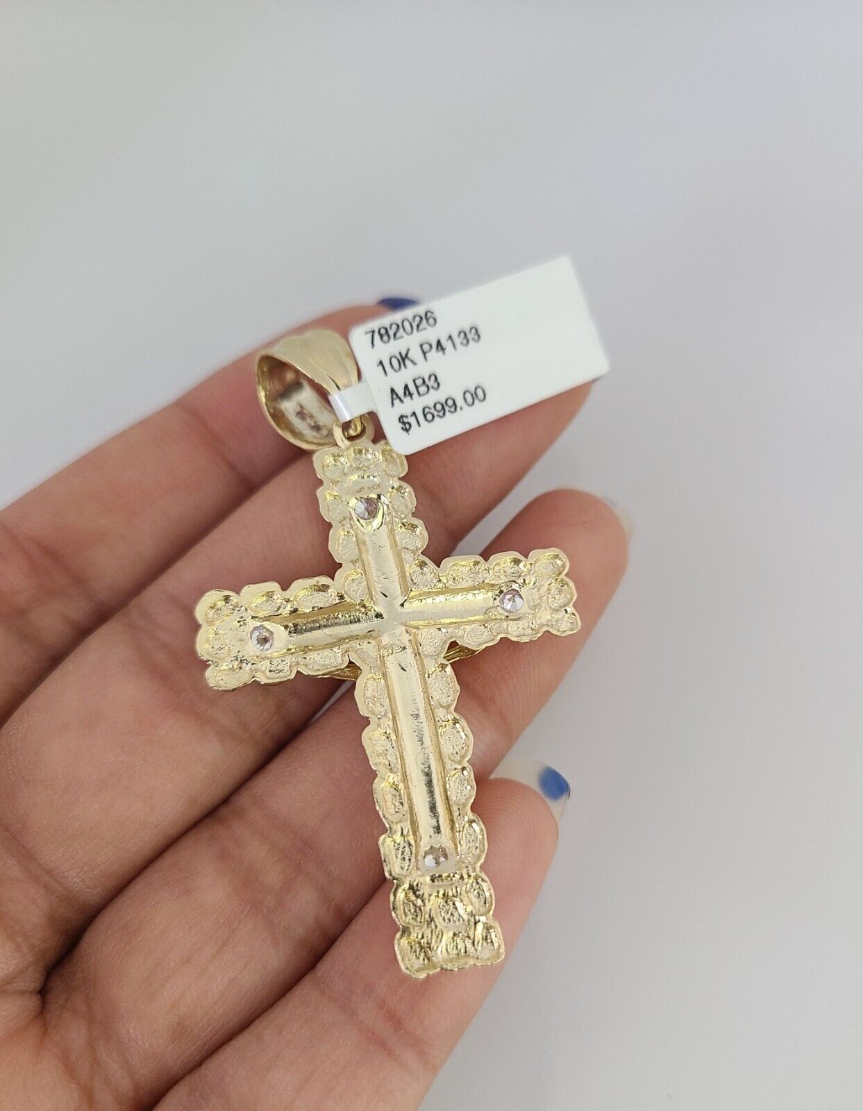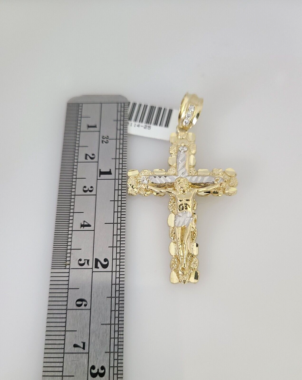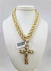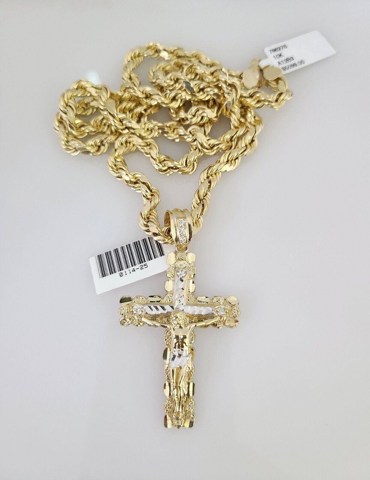 Genuine 10k Yellow Gold Rope Chain 18-30 Inch 6mm Necklace with Nugget Jesus Cross Charm design as a SET. The Various length of the Chain are 18-30 Inches. If you are not happy with the way it looks or feels, we do offer 30 - Days FREE Return shipping. Contact us for more information.