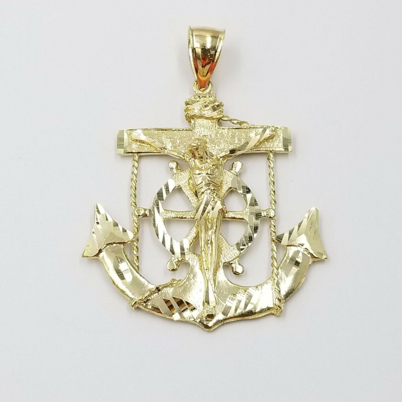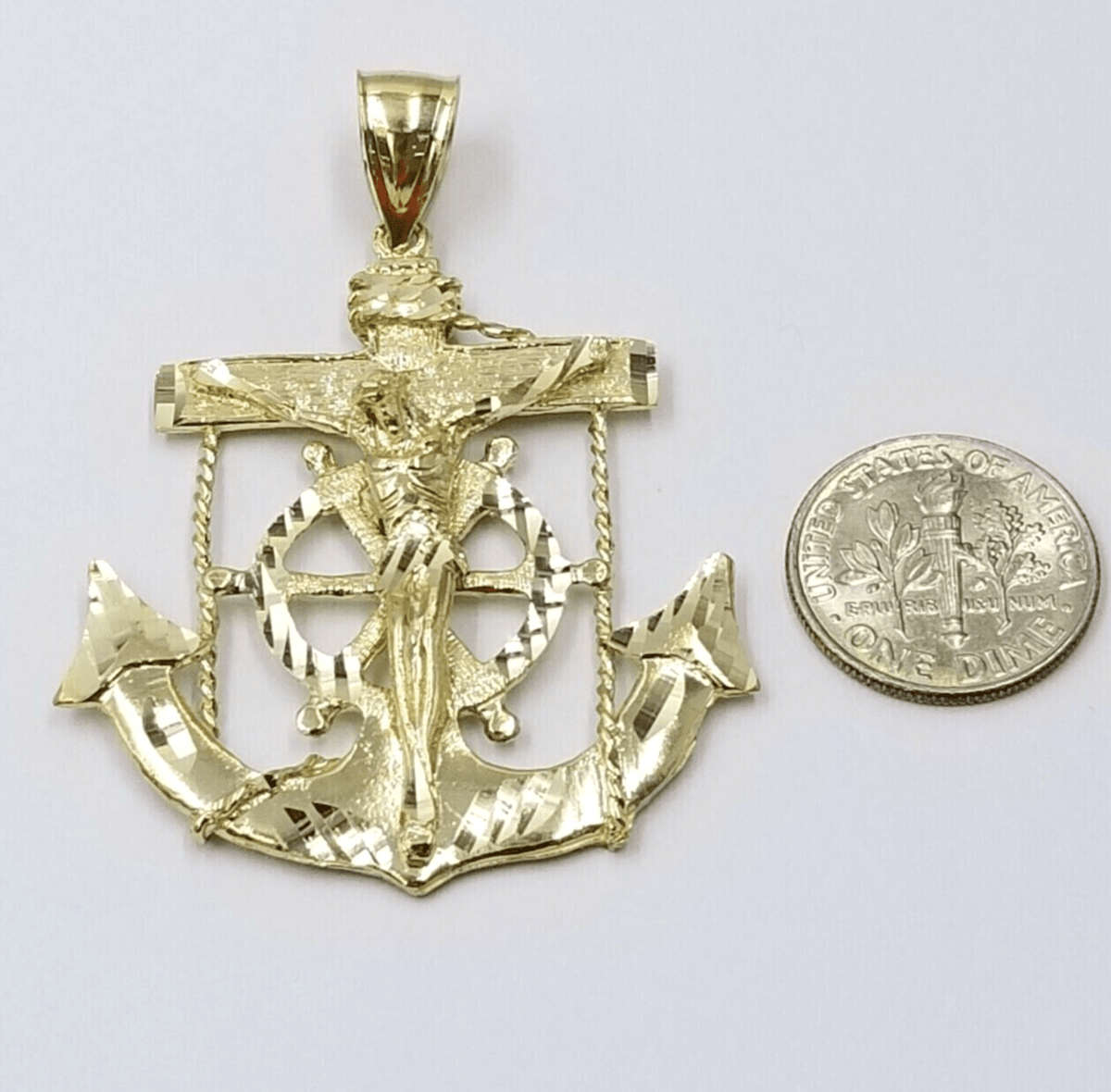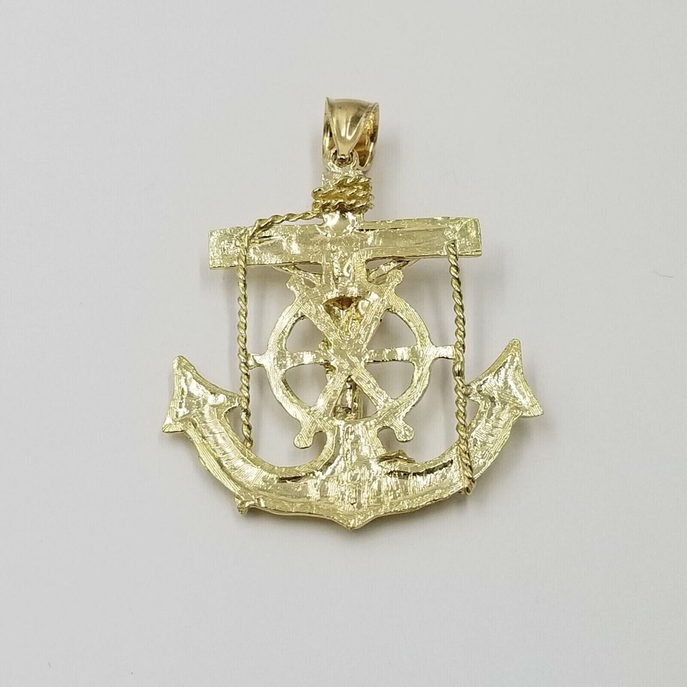 Jesus Anchor Charm Pendant Men's Real 10k Yellow Gold Solid 10kt For Chain