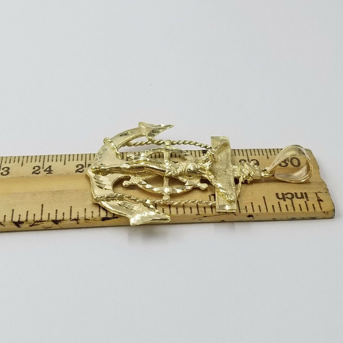 Real/ Genuine 10 k Yellow Gold Real (Not plated , Not filled ) Anchor Pendant For men's . The Length of the Pendant is 2.2 inch (approx. including the bail) and 7-8 grams of approximate weight. The pendant can be worn with any chain. The pendant is considered durable. If you are not happy with the way it looks or feels, we do offer 30 - Days FREE Return shipping. Please note that this listing does not include a Necklace.