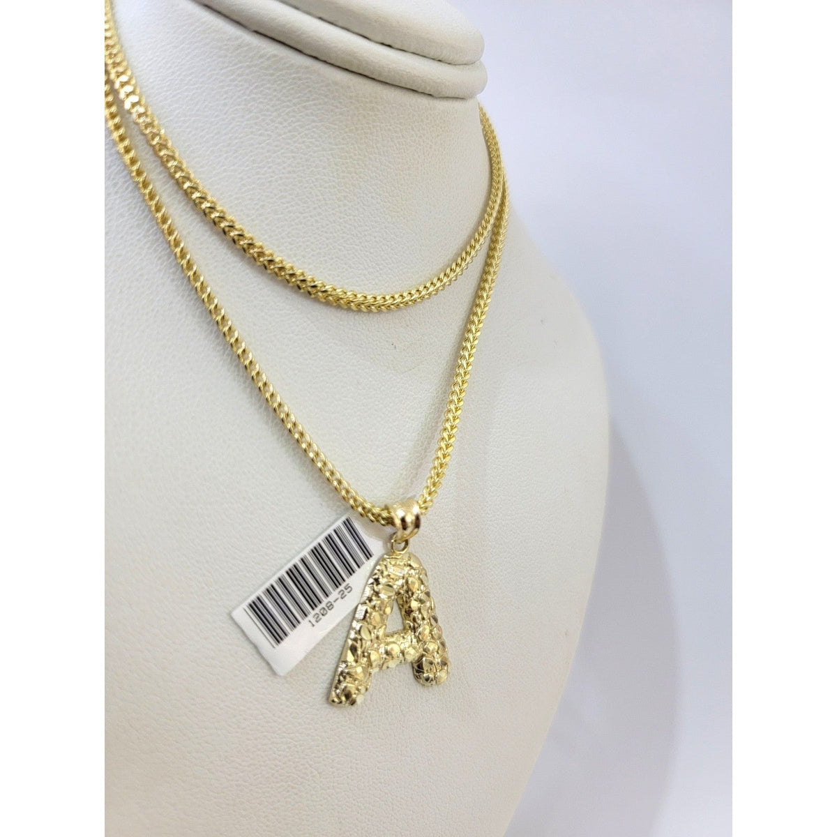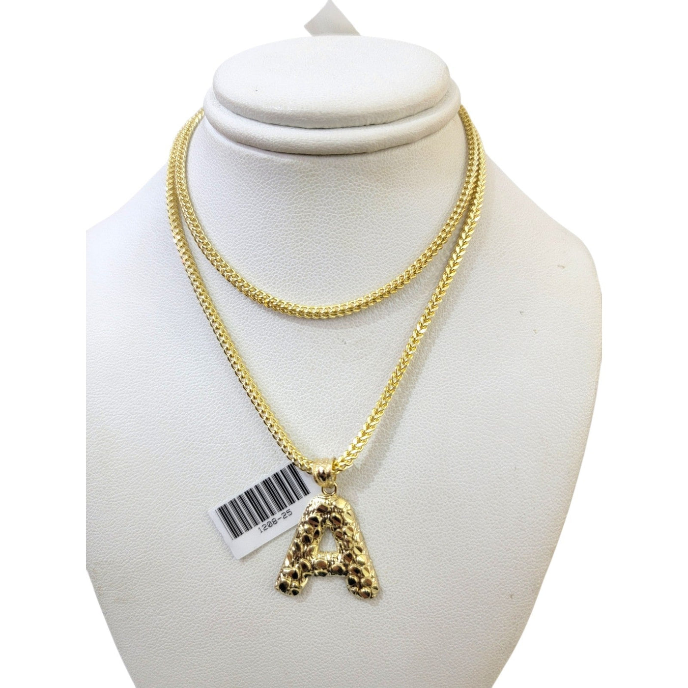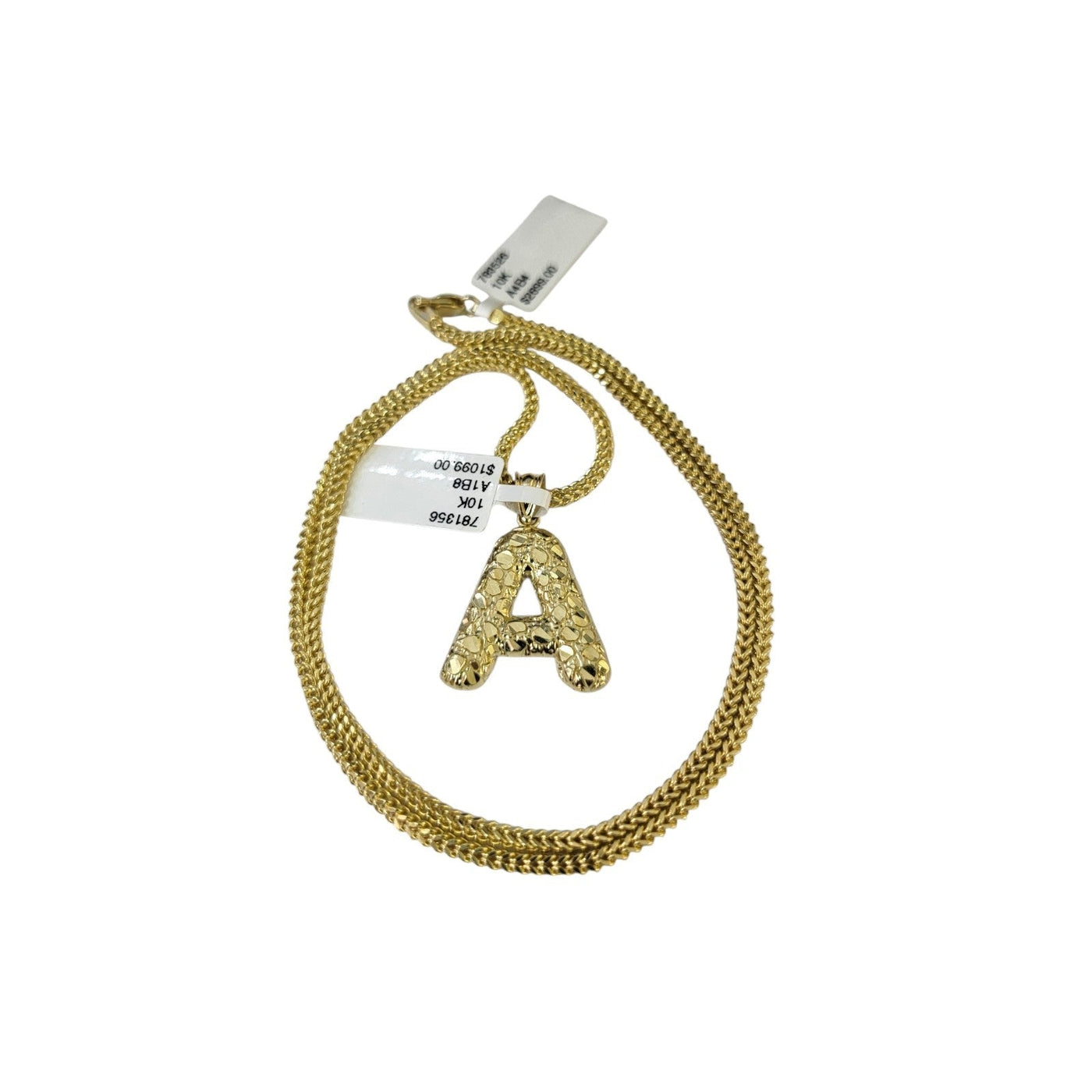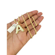 Real 10k Yellow Gold Chain Pendant SET A Nugget Initial Charm Franco Necklace 2.5mm
