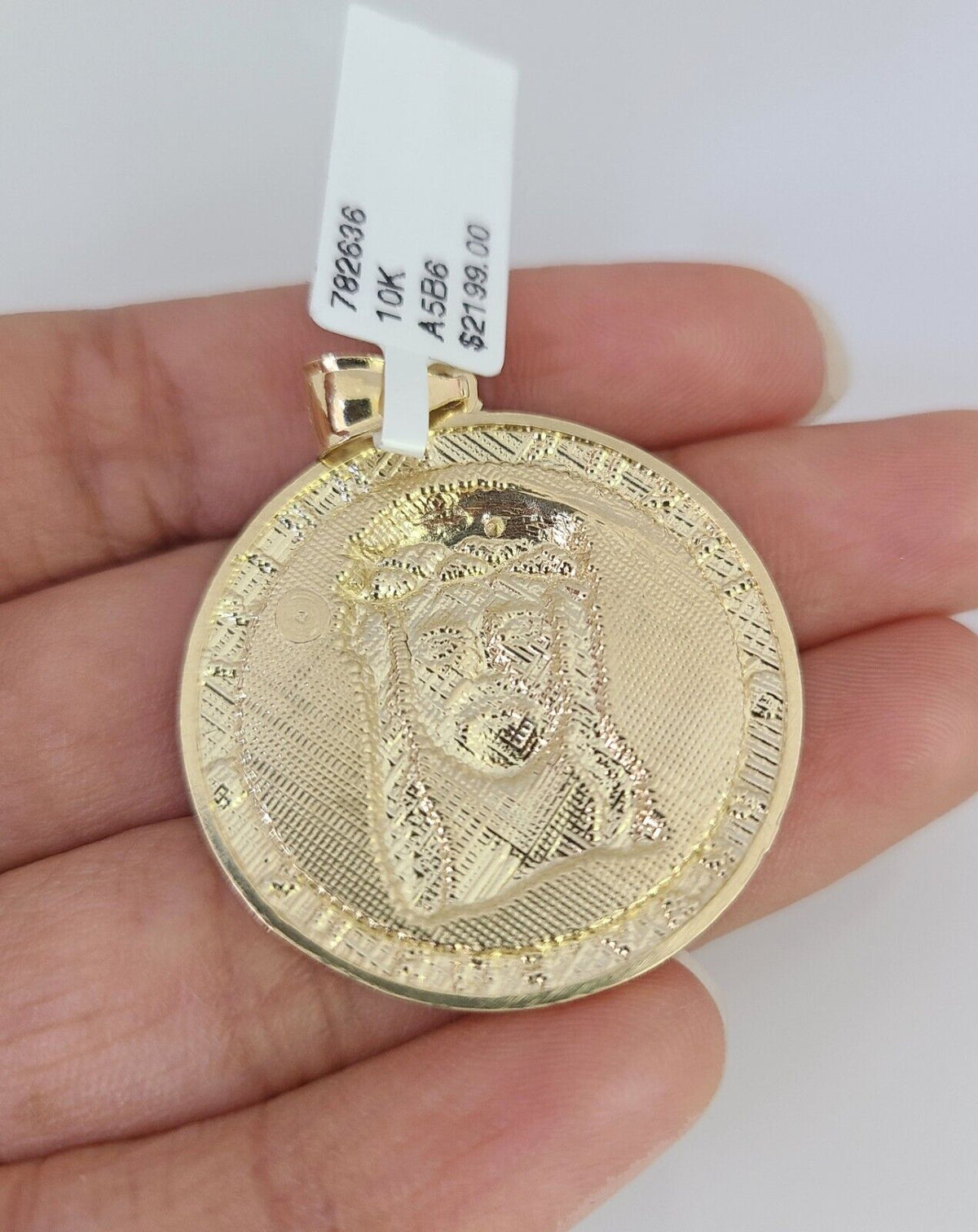 Real 10k Gold Byzantine Chain Jesus Charm Pendant SET 3mm 24 Inch Mens Necklace