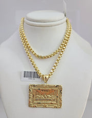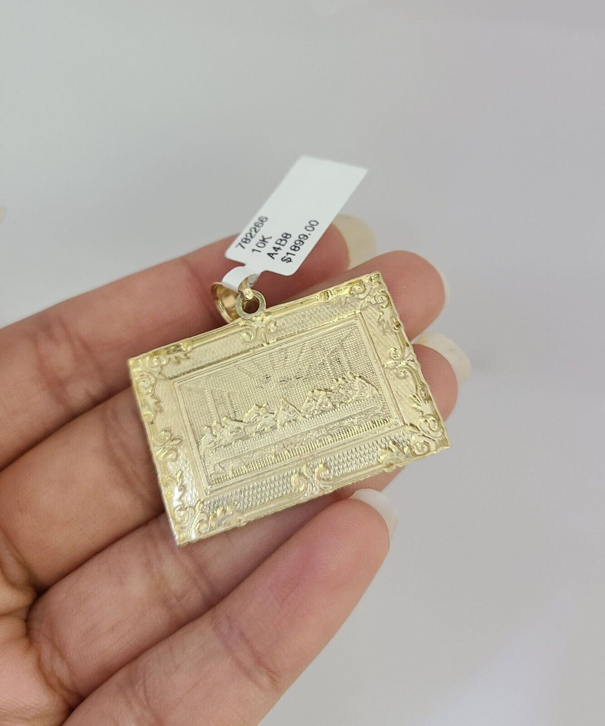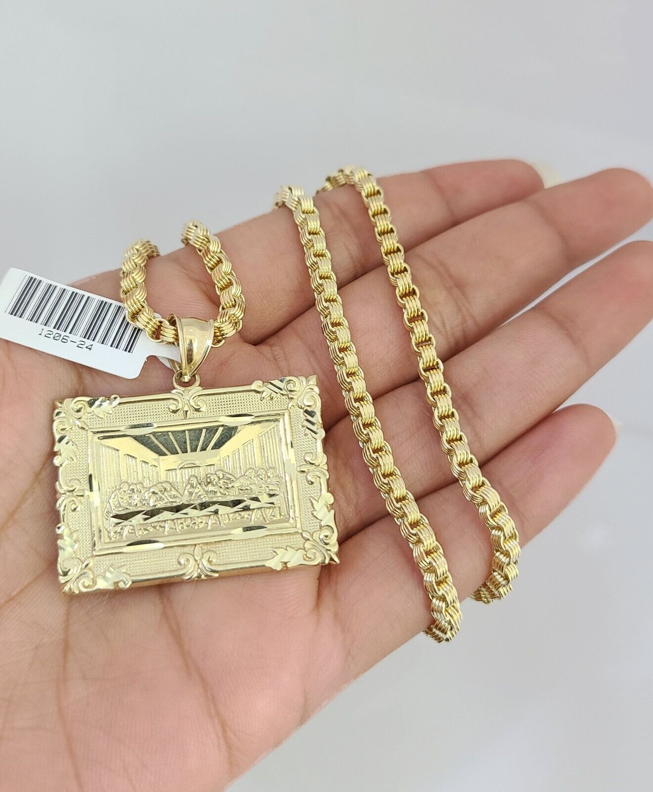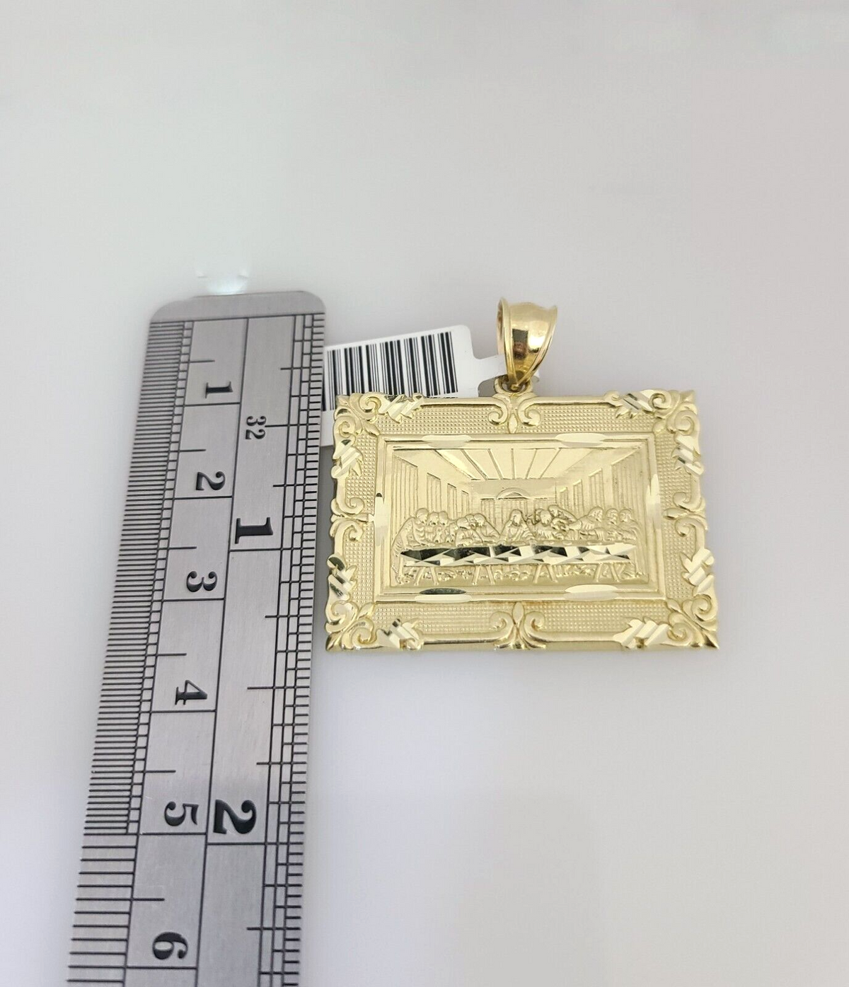 Real 10k Gold Byzantine Necklace Last Supper Charm SET Chain 20-30" 3mm Pendant