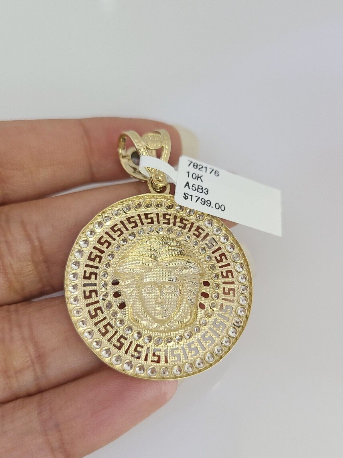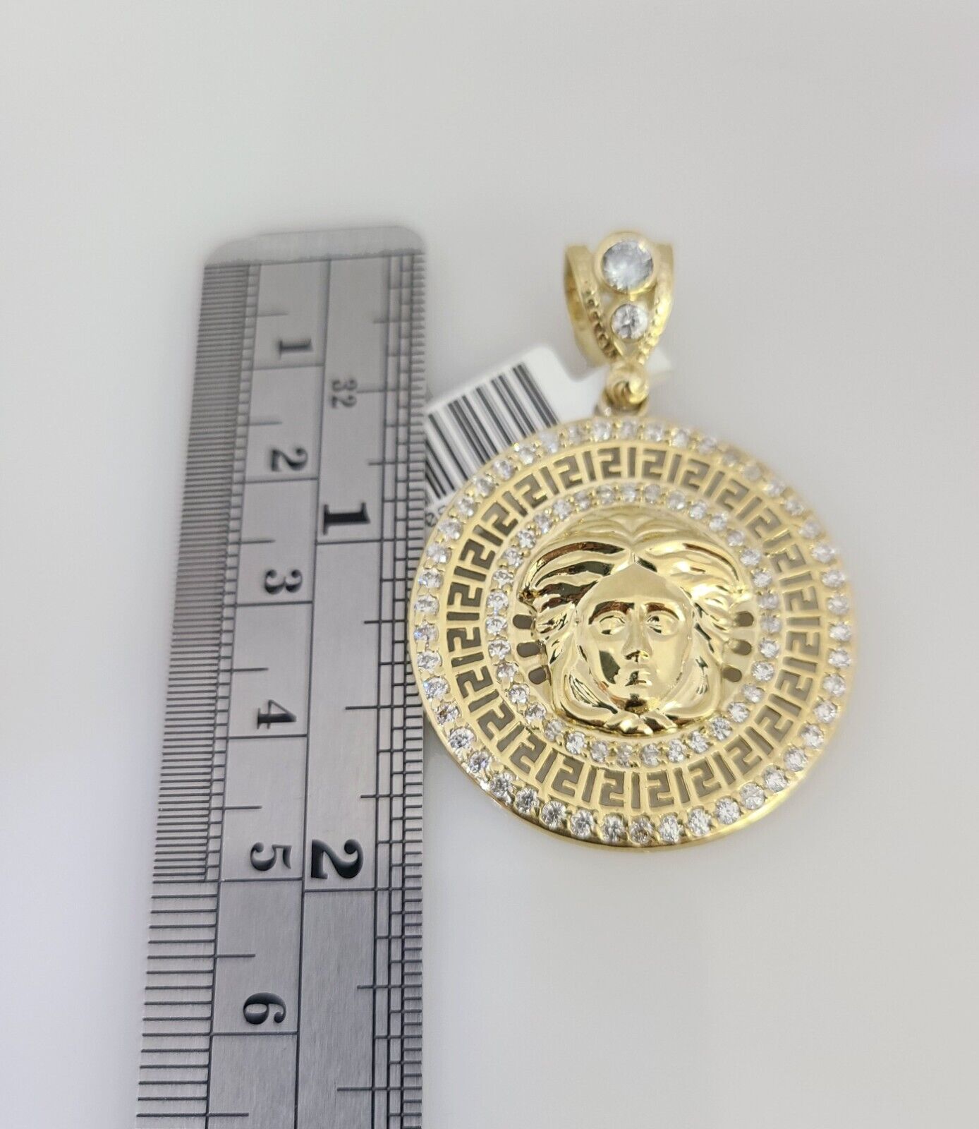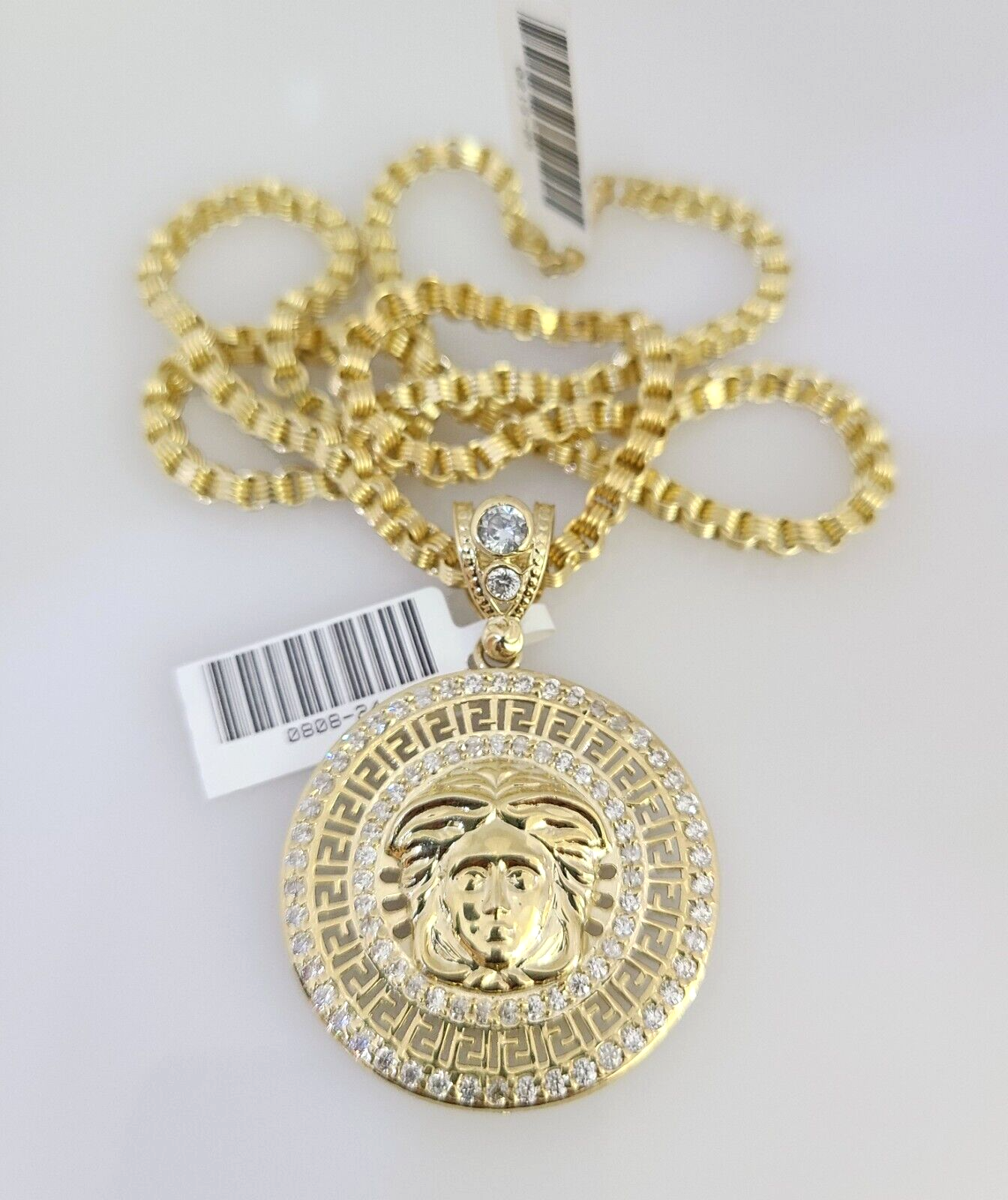 Real 10k Gold Byzantine Necklace Medusa Head Charm SET Chain 20-30" 3mm Pendant - 22 inch with charm