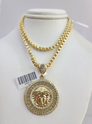 Real 10k Gold Byzantine Necklace Medusa Head Charm SET Chain 20-30" 3mm Pendant