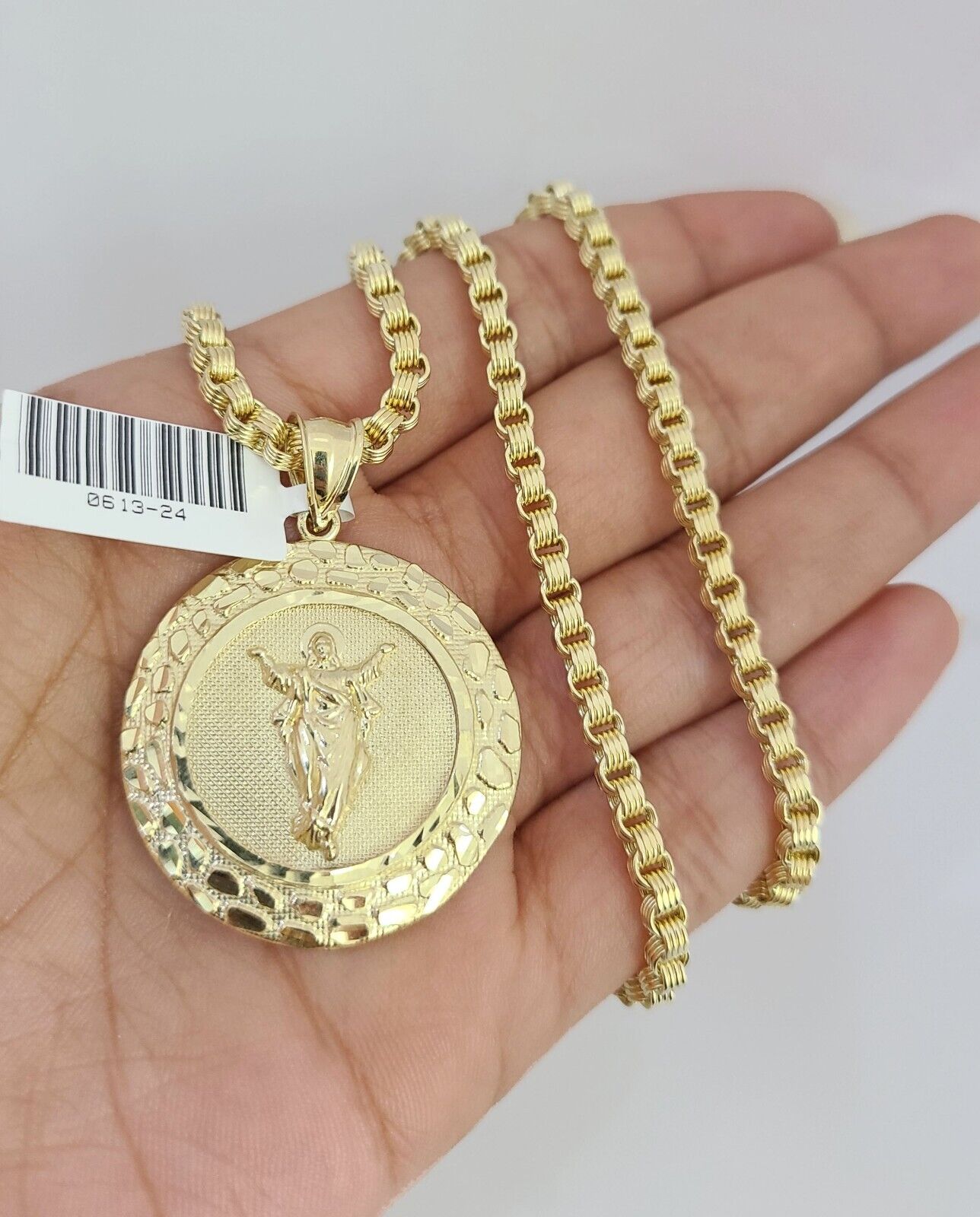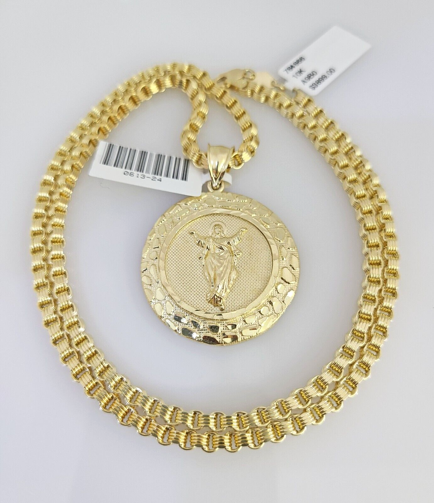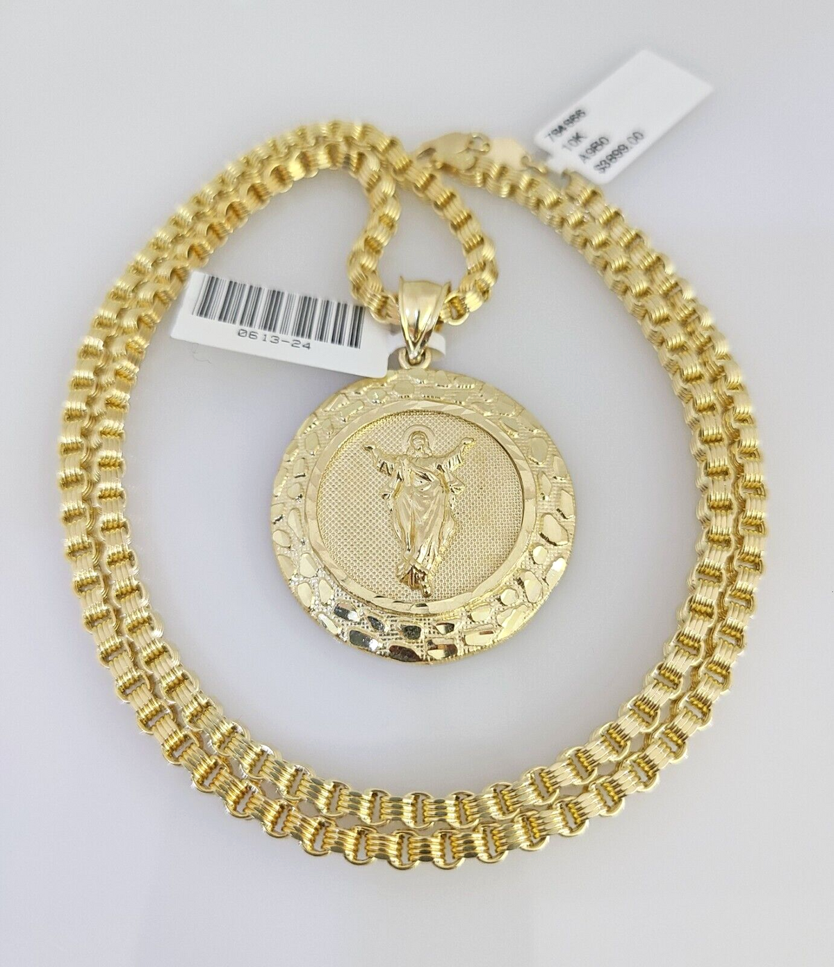 Real 10k Gold Byzantine Necklace Nugget Jesus Charm SET Chain 20-30" 3mm Pendant