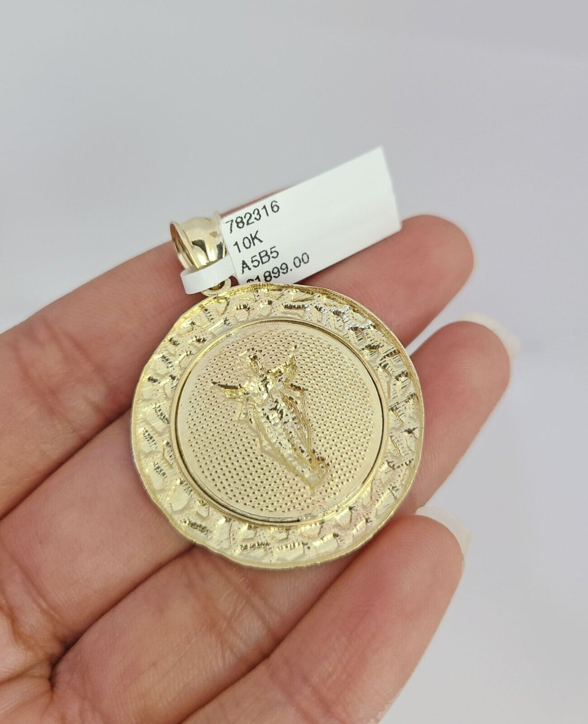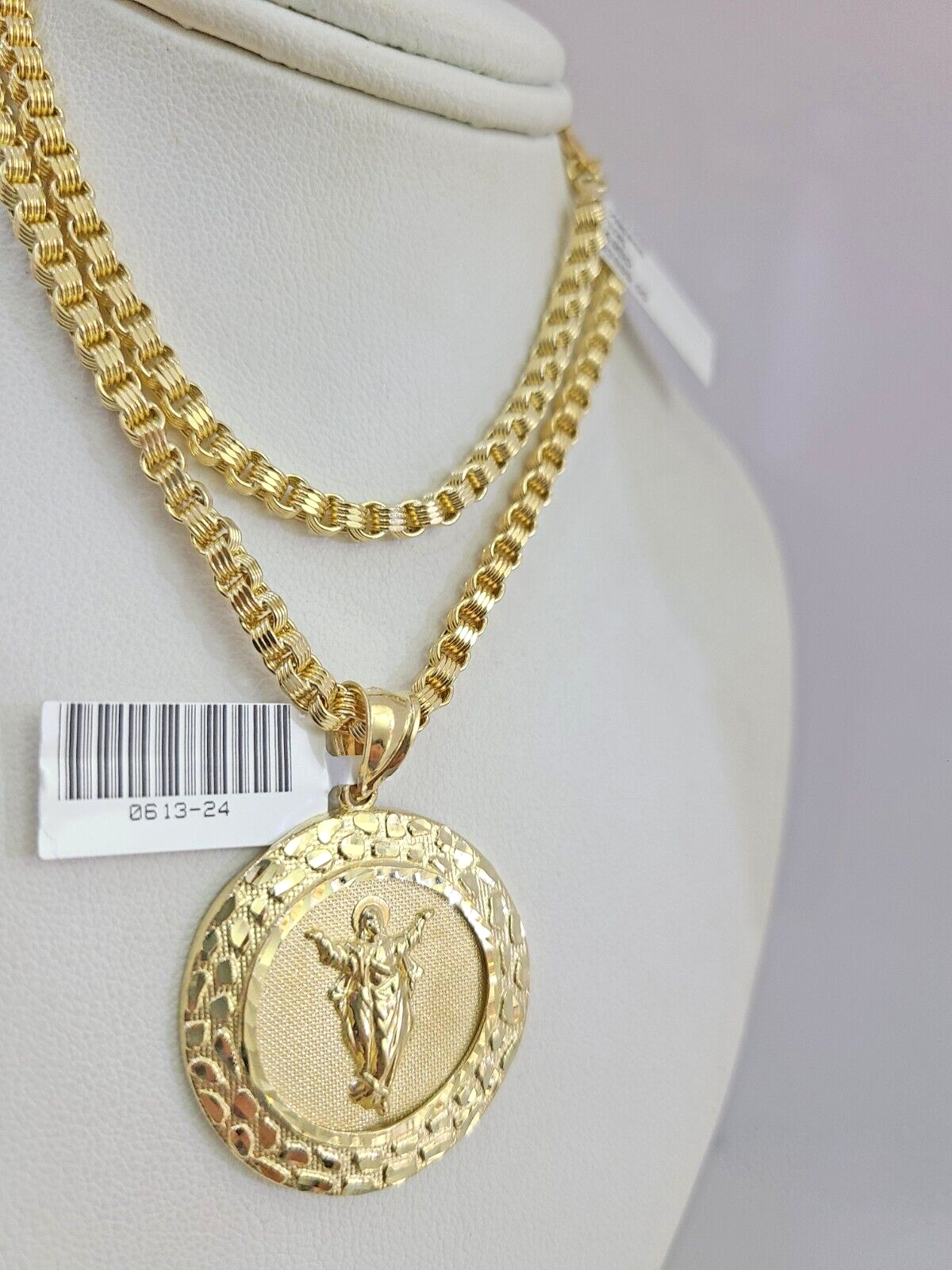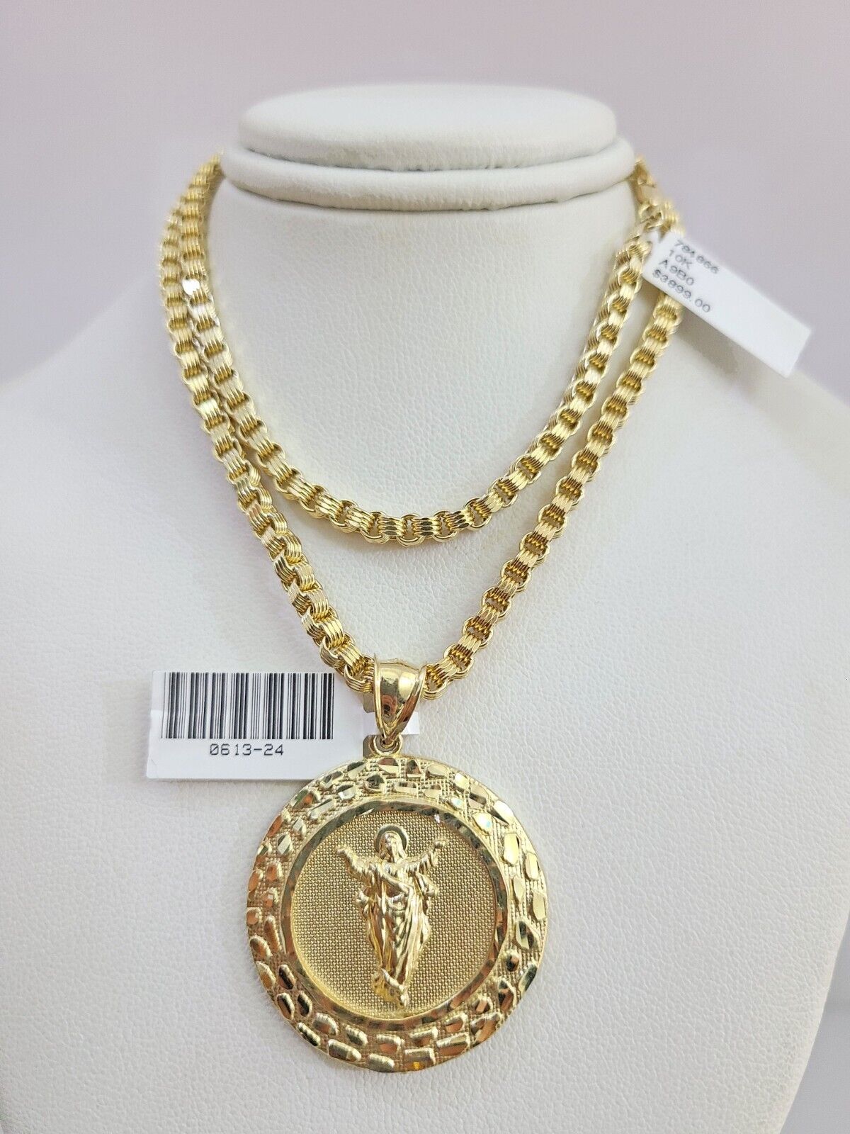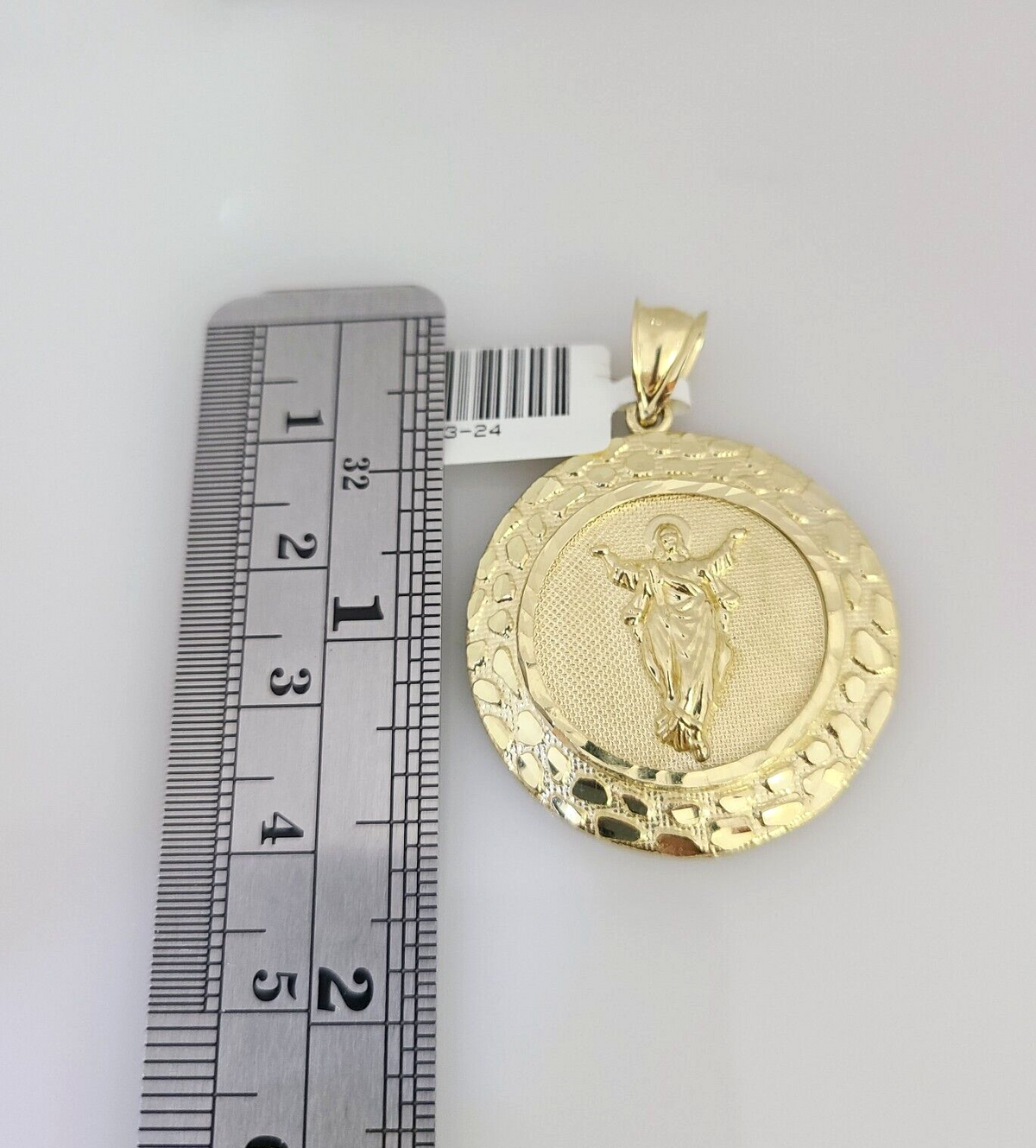 Real 10k Gold Byzantine Necklace Nugget Jesus Charm SET Chain 20-30" 3mm Pendant
