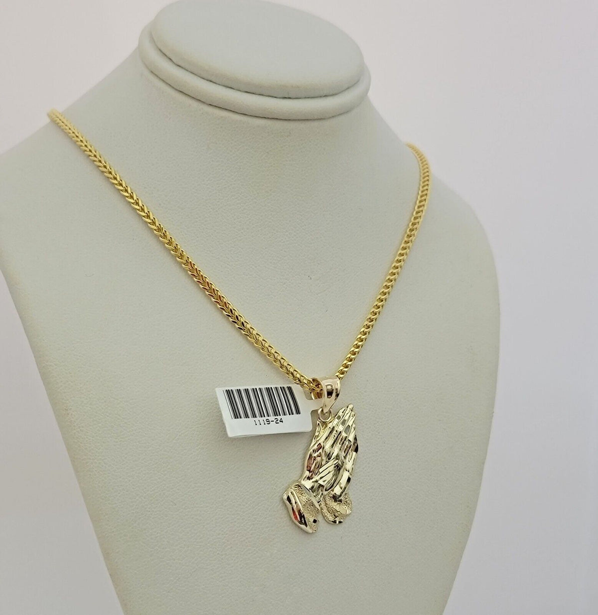 Real 10k Gold Chain Pendant SET Franco Necklace Praying Hand Charm 2.5mm 18"-24"