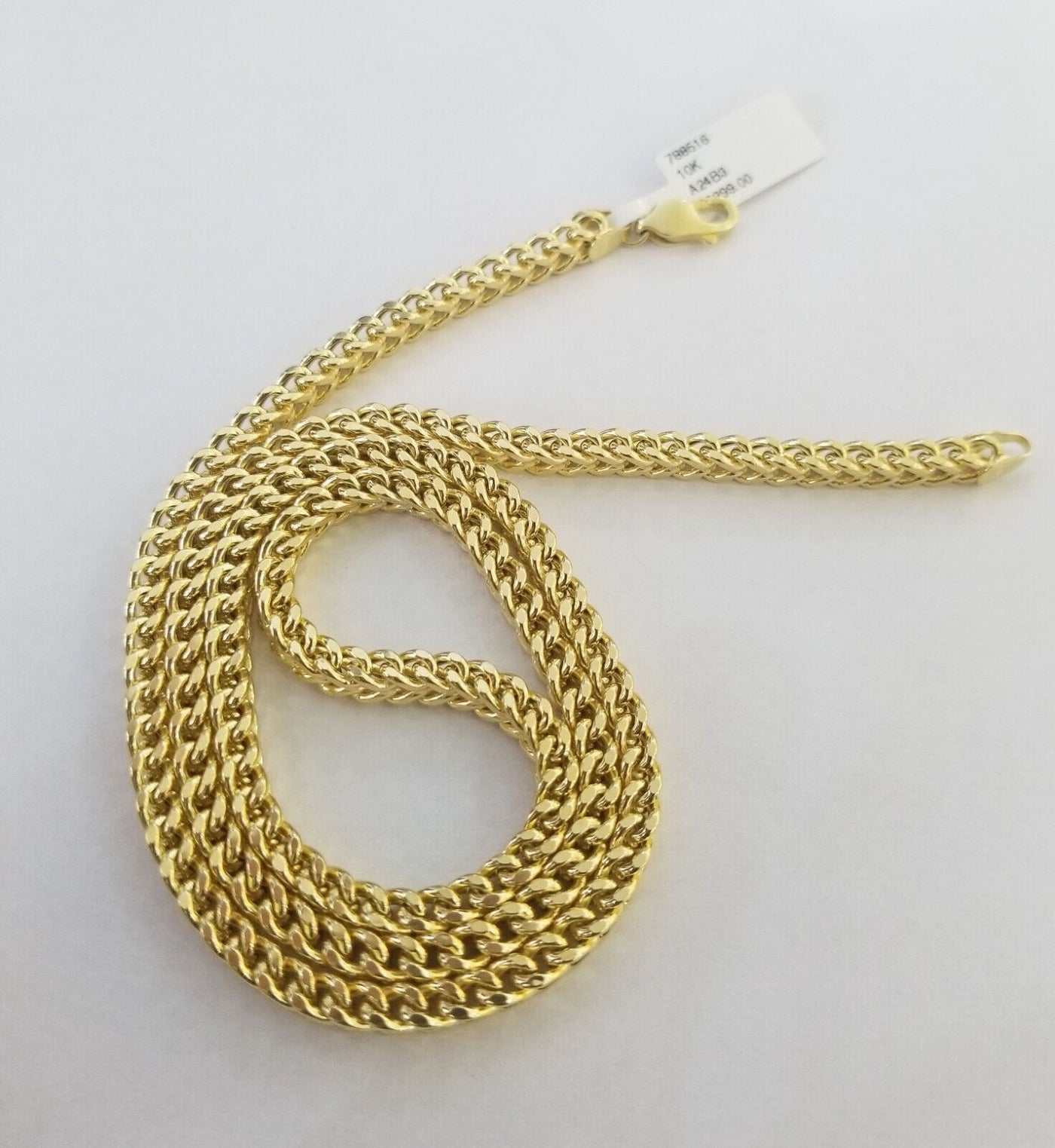 We present You with This Absolutely Stunning Real 10k Yellow Gold Franco Chain with Jesus Cross Charm Pendant. It has a detailed cut with a very good finish.��These Beautiful Chain and Pendant will not tarnish, discolor, or fade because they are Pure 10K Gold. Please feel free to contact us if you have any queries regarding the item.��