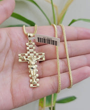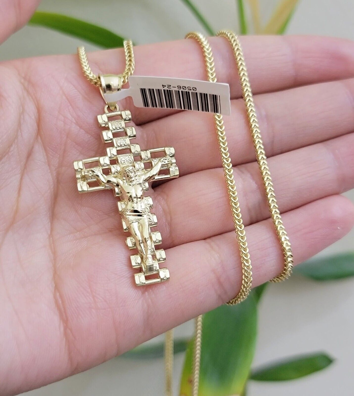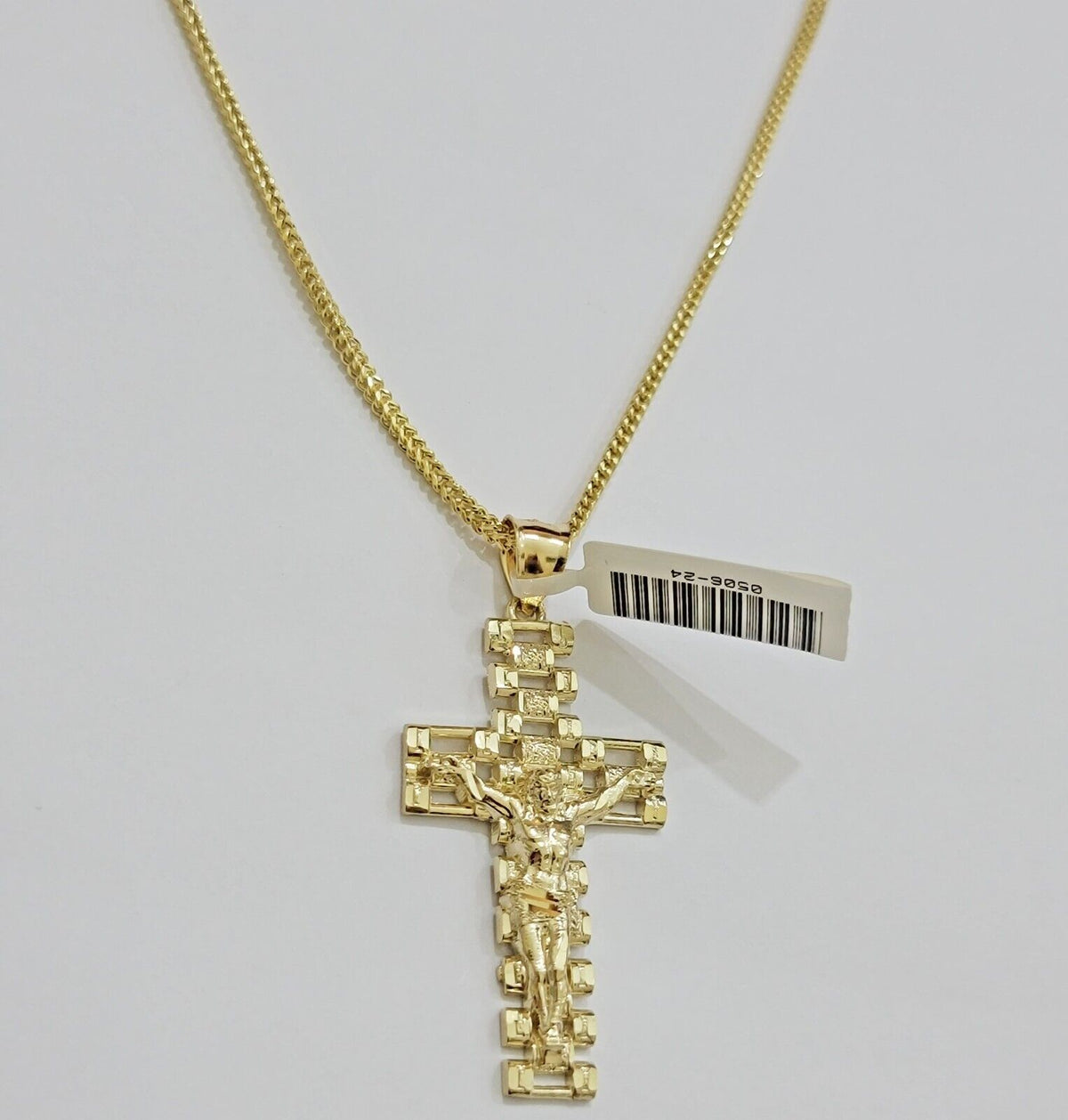 Real 10k Gold Franco Chain Cross Charm SET 18-24 Inch 2mm Necklace Jesus Pendant - 18in