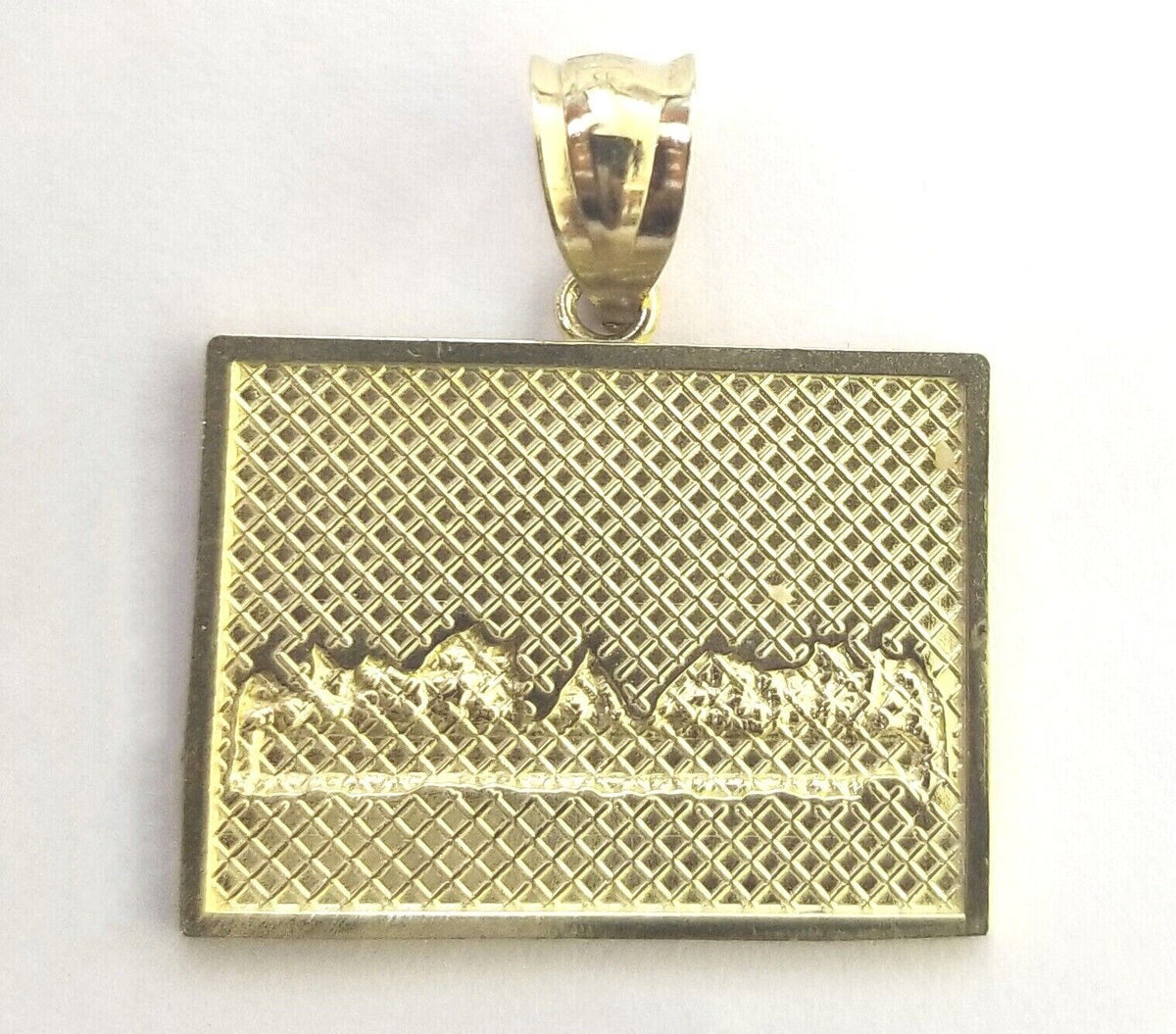 We present You with This Absolutely Stunning Real 10k Yellow Gold Miami Cuban Chain with Last Supper Charm Pendant. It has a detailed cut with a very good finish.��These Beautiful Chain and Pendant will not tarnish, discolor, or fade because they are Pure 10K Gold. Please feel free to contact us if you have any queries regarding the item.��