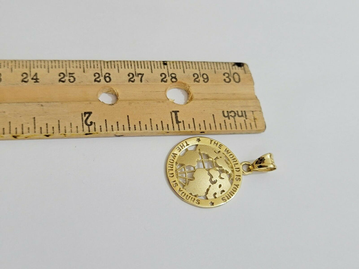 Real 10k Gold Miami Cuban Link 24" Chain Pendant Set 3.5mm Necklace World Map Charm