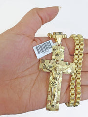 Is Presenting You with This Absolutely Stunning Real 10k Gold Nugget Cross Byzantine Necklace 4mm 22" with Jesus Crucifix cross pendant SET.��These Beautiful chains and Pendants will not tarnish, discolor, or fade because they are Pure 10K Gold.��We also have them in various another length. Please feel free to contact us if you have any queries regarding the item.��